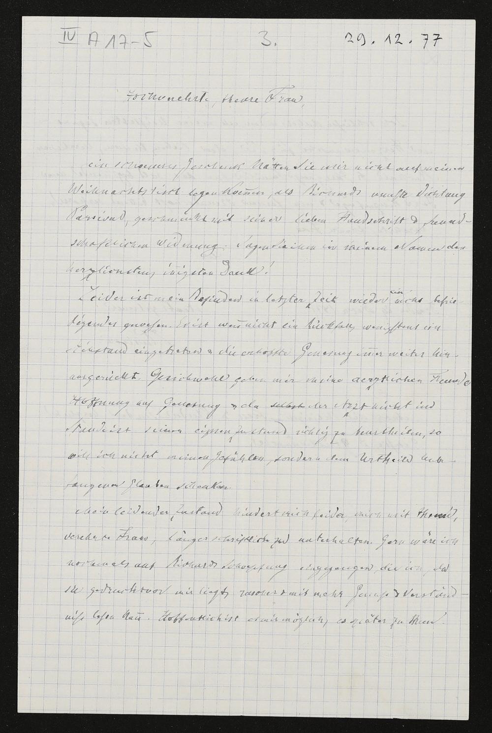 unvollständiger, eigenhändiger Brief von Anton Pusinelli an Cosima Wagner