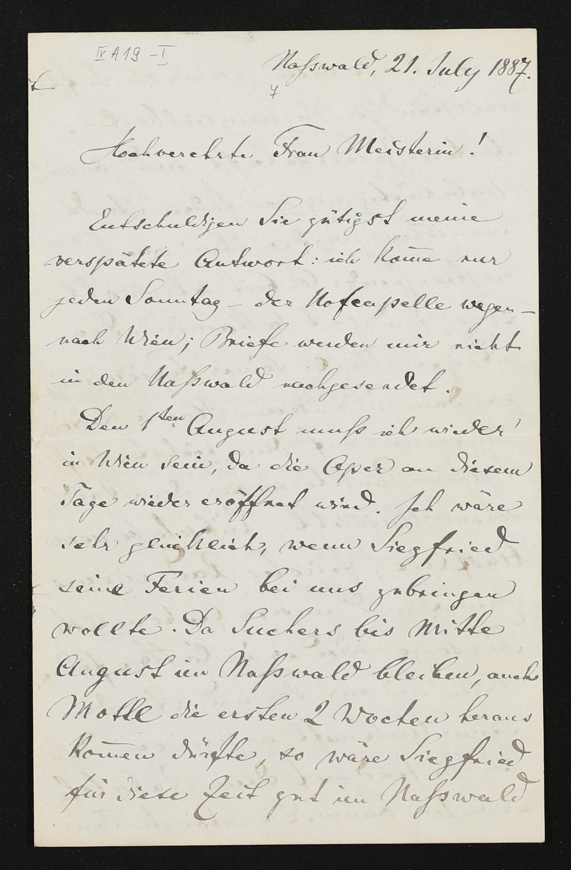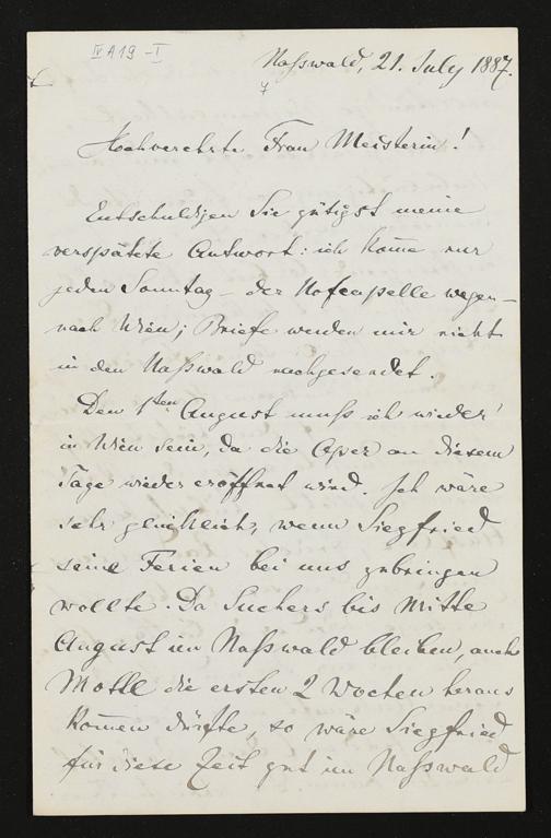 eigenhändiger Brief von Hans Richter an Cosima Wagner