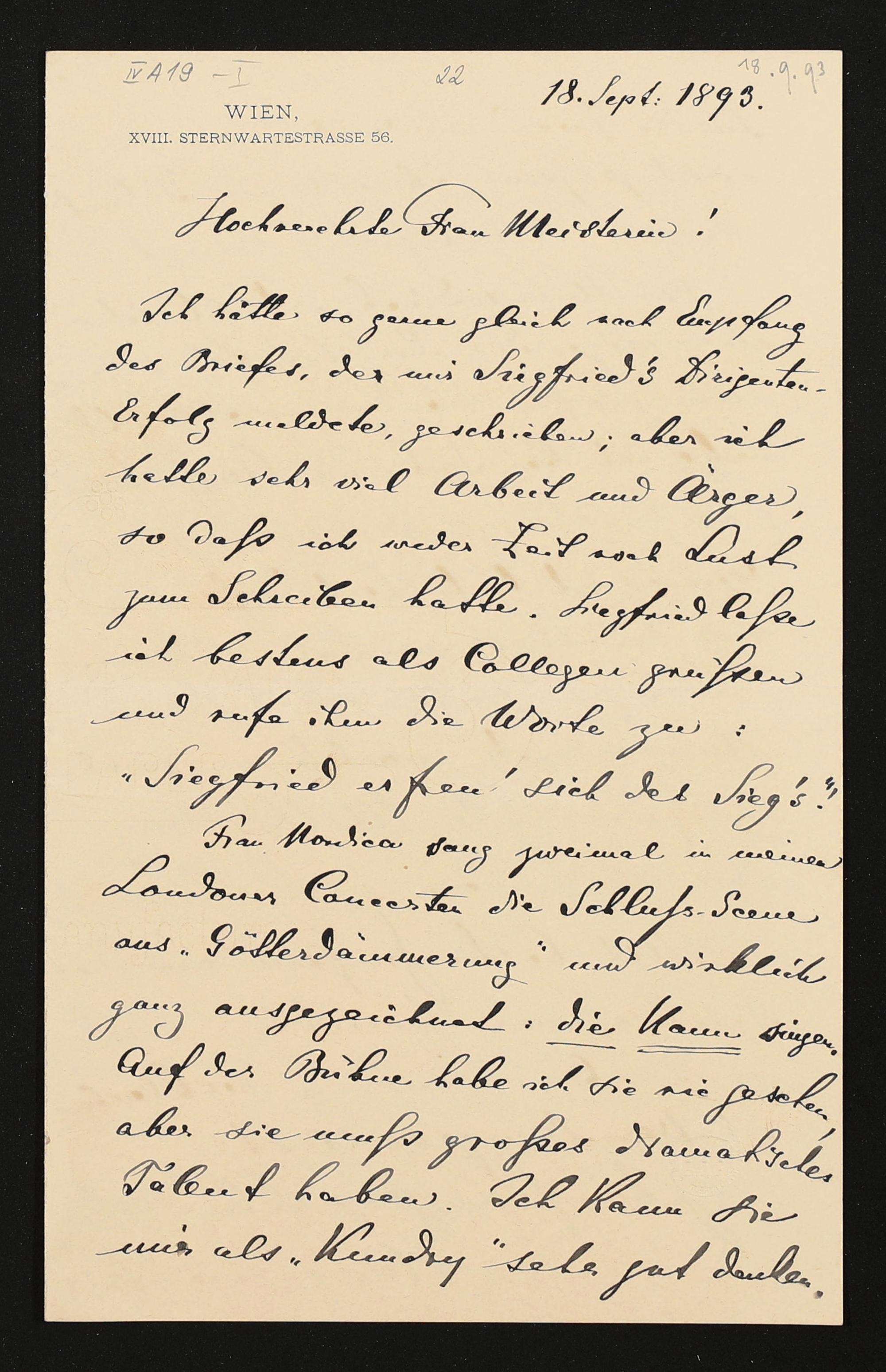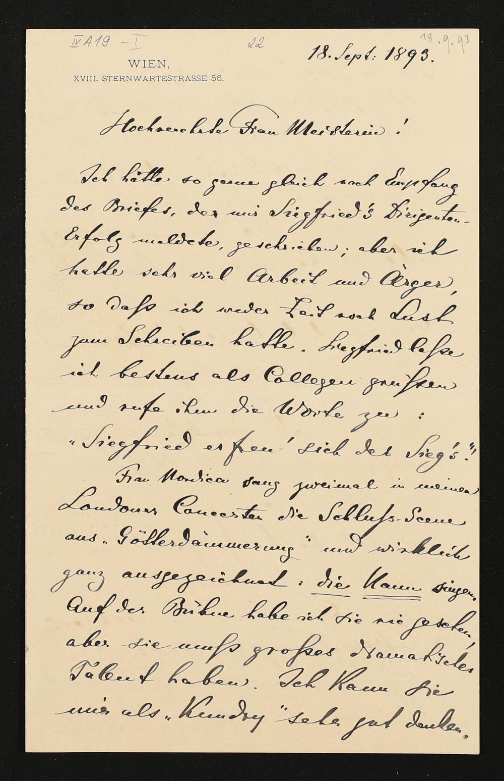 eigenhändiger Brief von Hans Richter an Cosima Wagner, eigenhändiger Brief von Cosima Wagner an Adolf von Gross