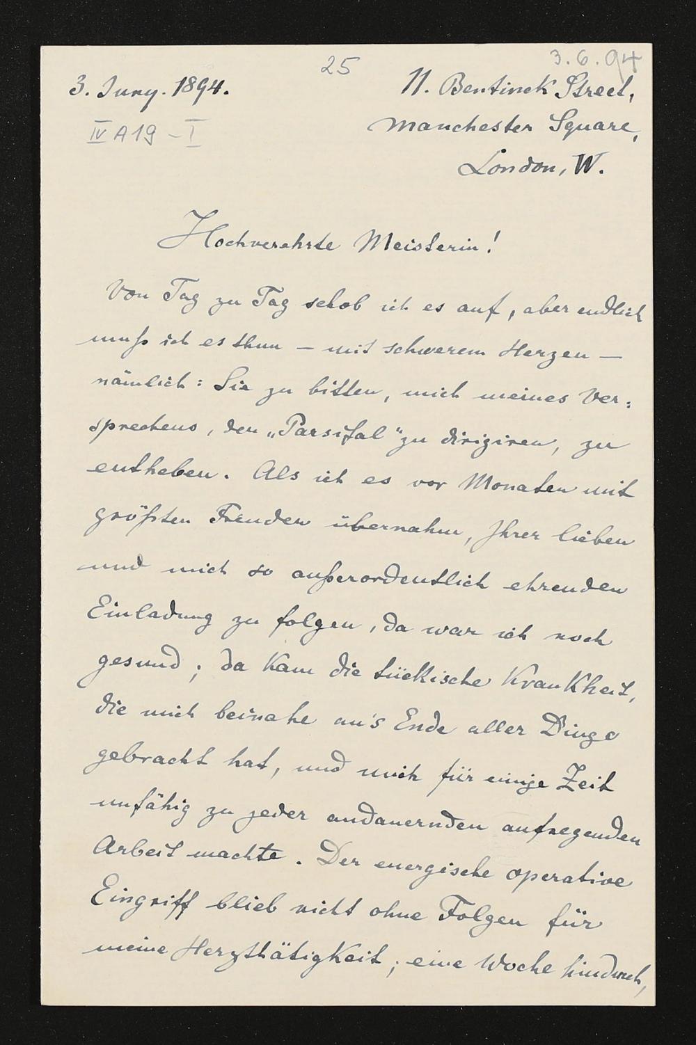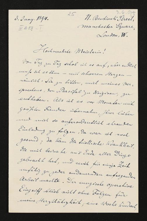eigenhändiger Brief von Hans Richter an Cosima Wagner