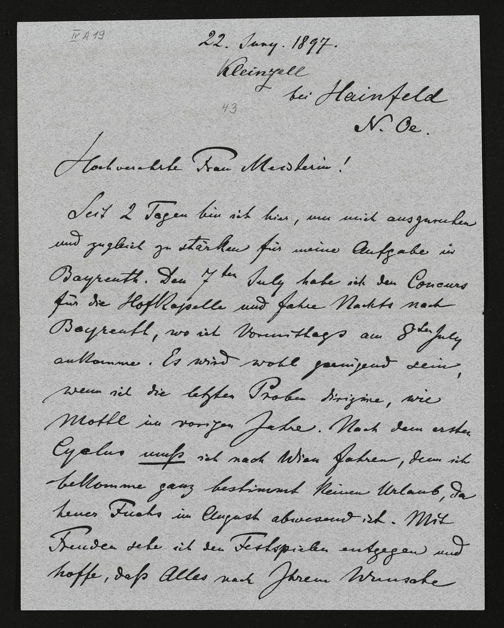 eigenhändiger Brief von Hans Richter an Cosima Wagner