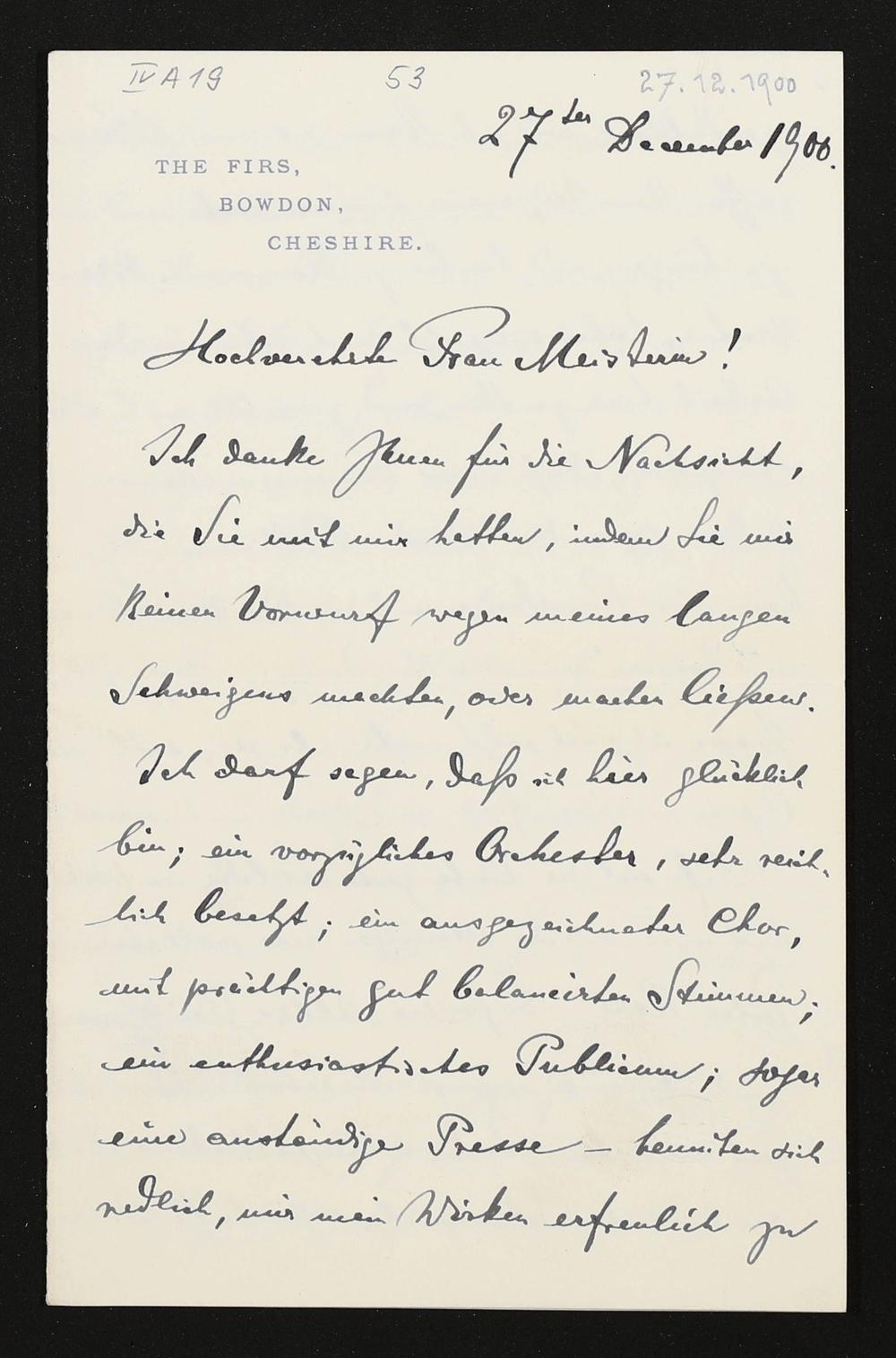 eigenhändiger Brief von Hans Richter an Cosima Wagner