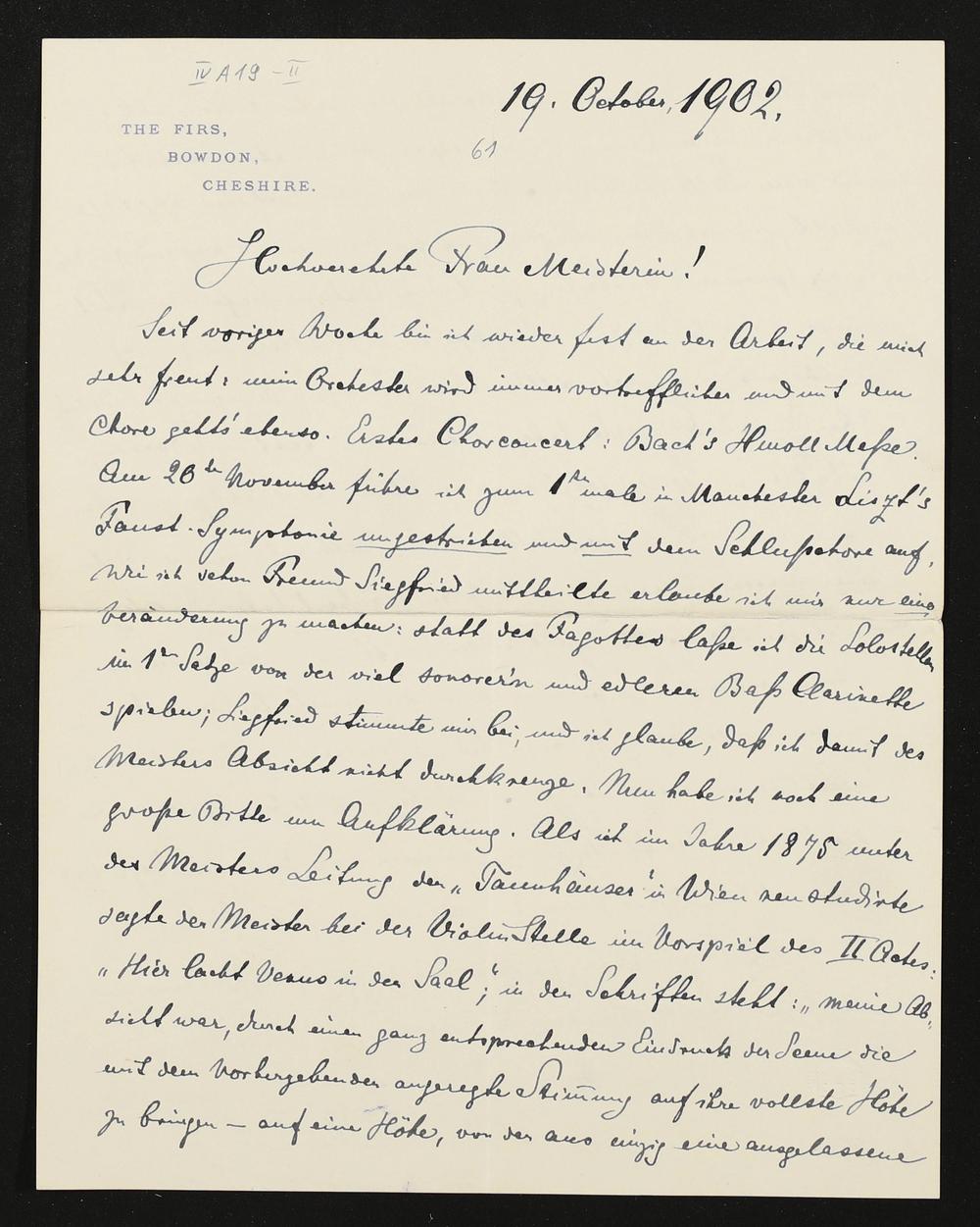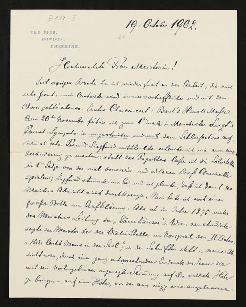 eigenhändiger Brief von Hans Richter an Cosima Wagner