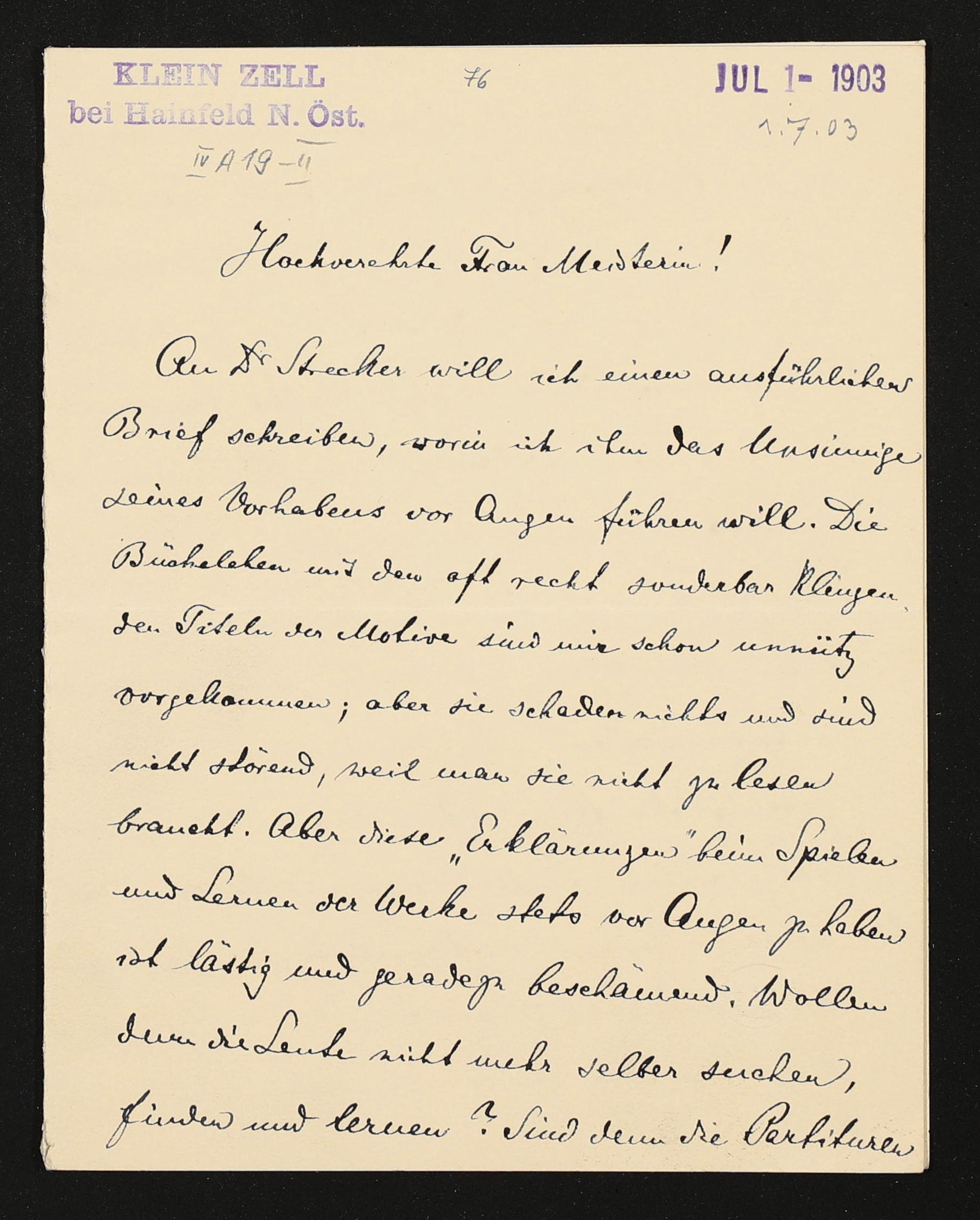 eigenhändiger Brief von Hans Richter an Cosima Wagner