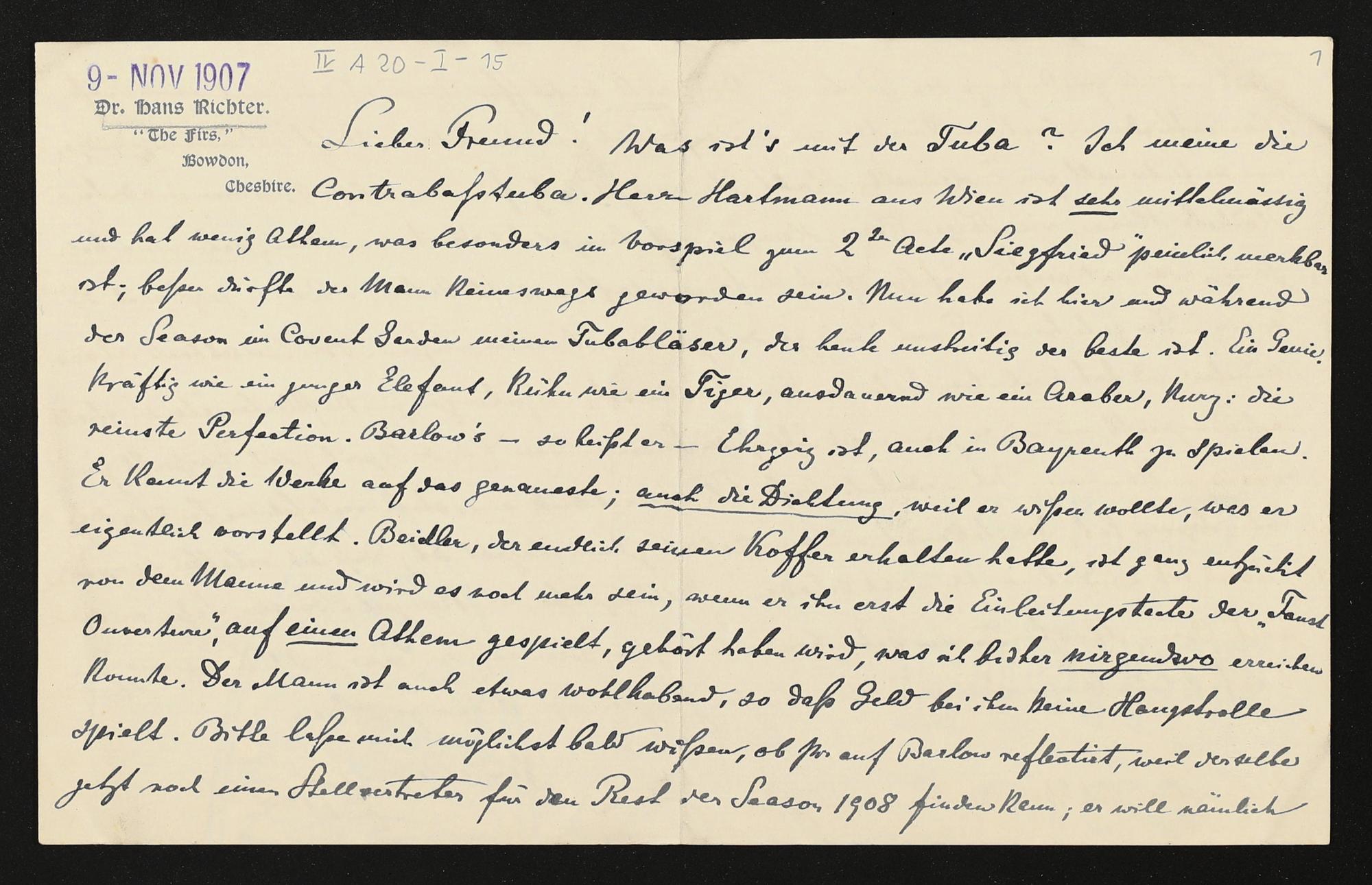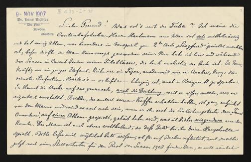 eigenhändige Briefkarte von Hans Richter an Adolf von Gross