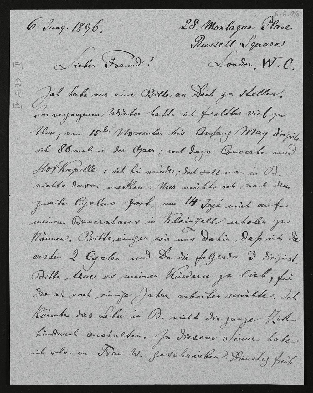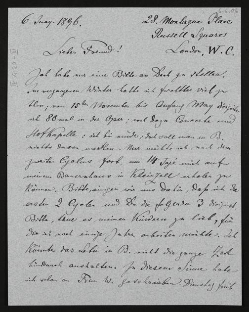eigenhändiger Brief von Hans Richter an Felix Mottl