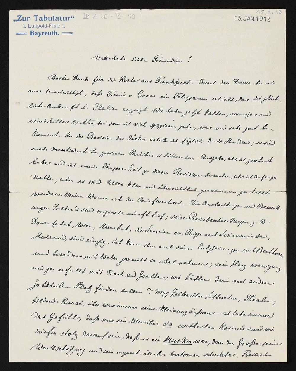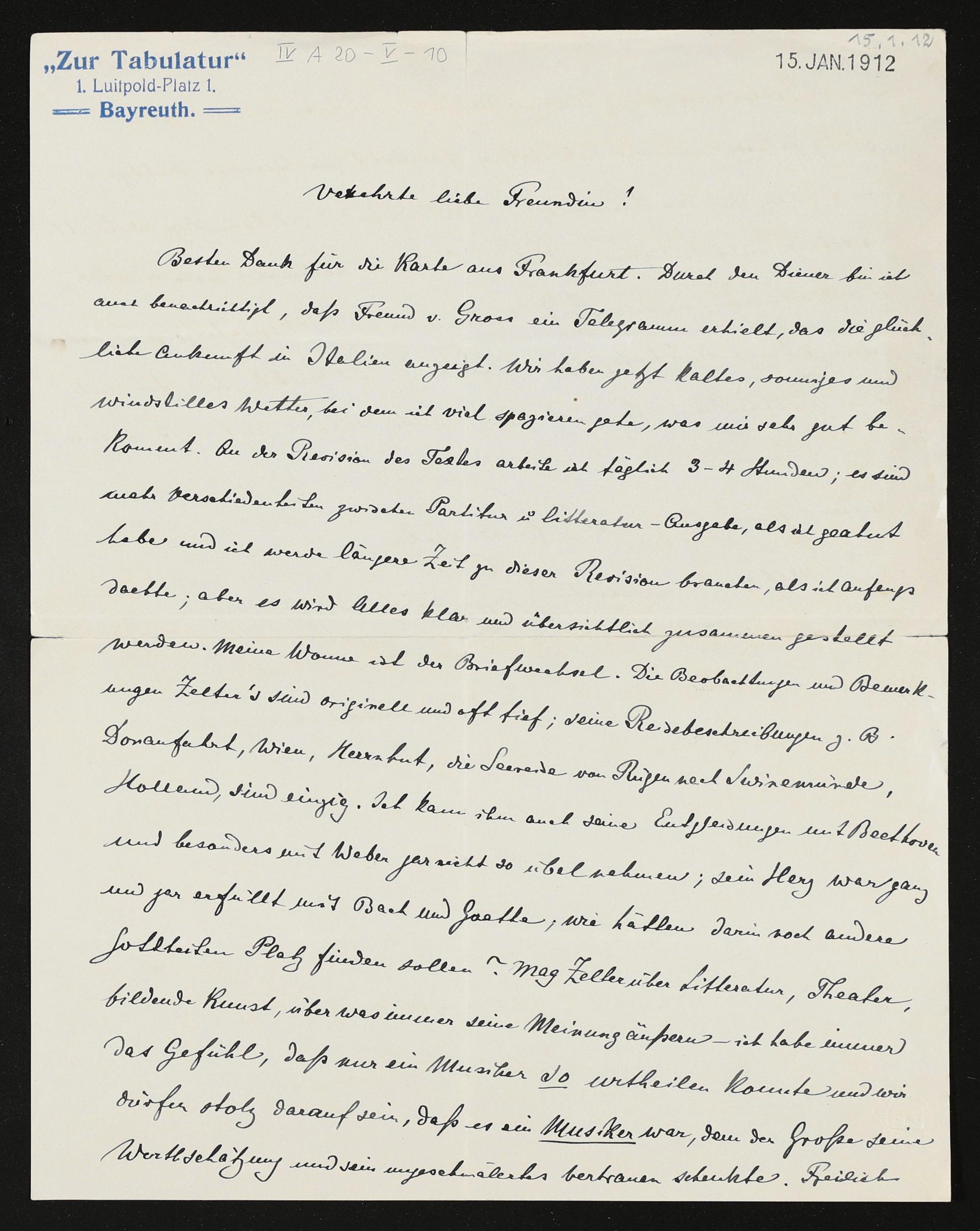 eigenhändiger Brief von Hans Richter an Eva Chamberlain