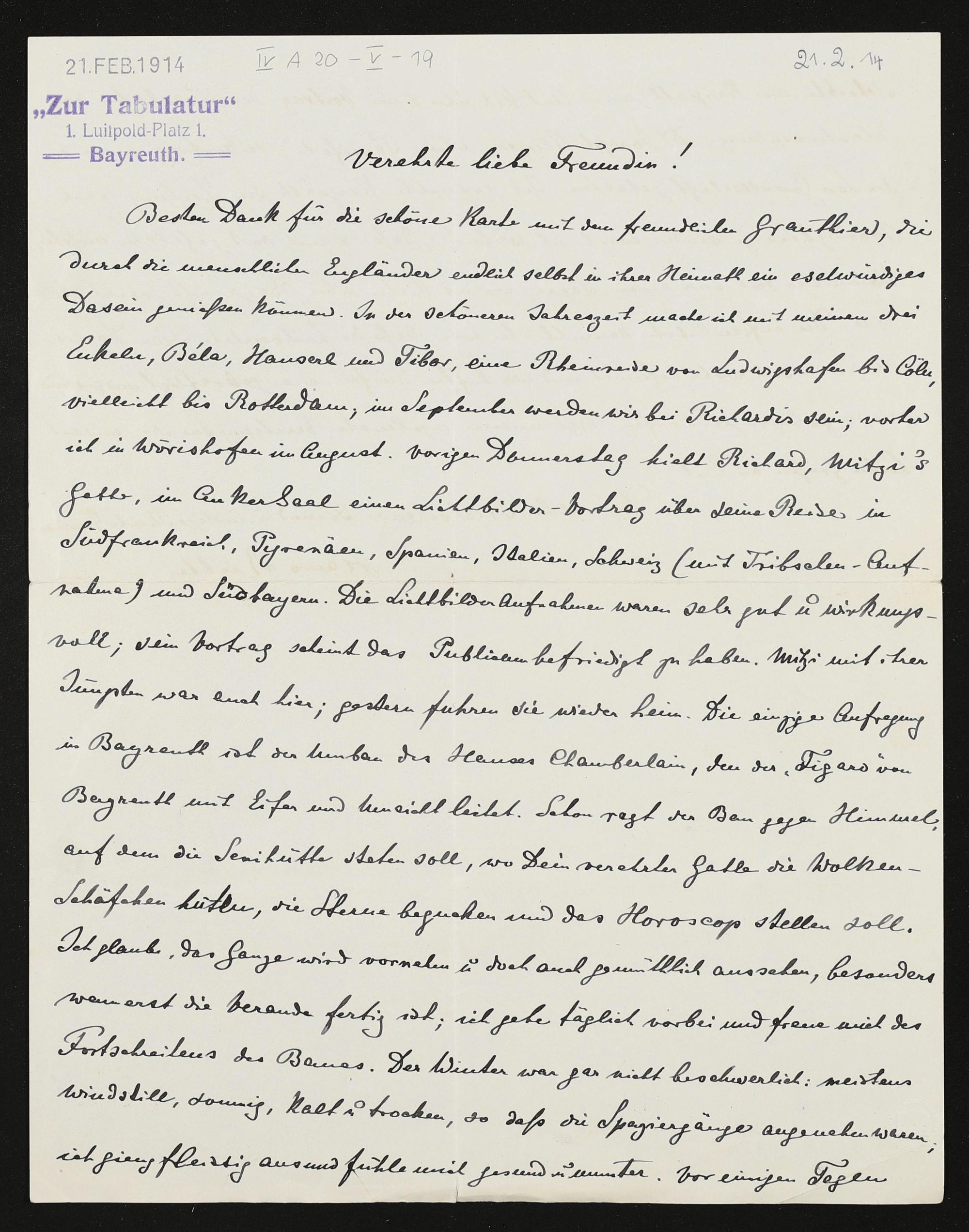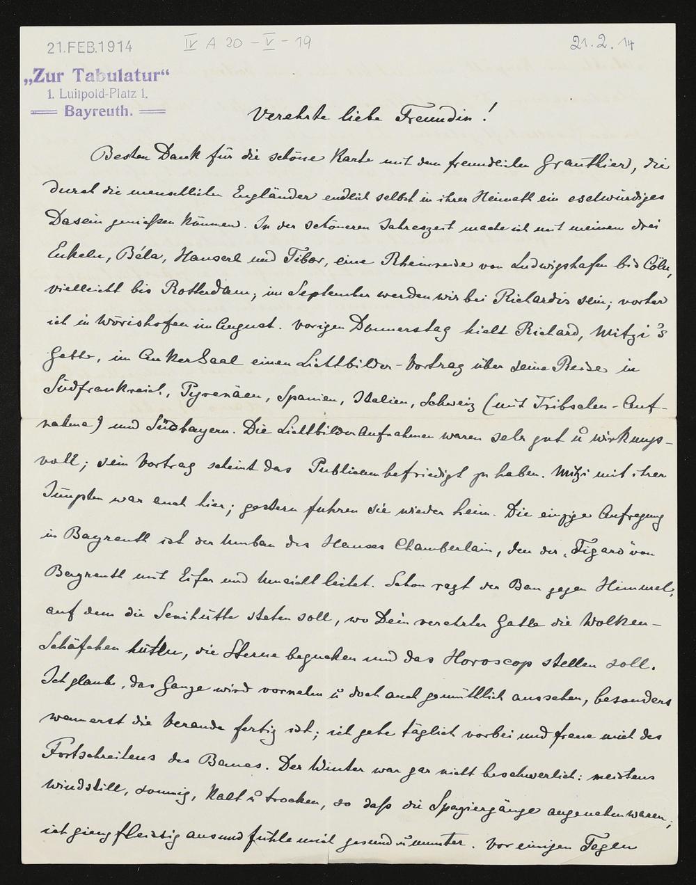 eigenhändiger Brief von Hans Richter an Eva Chamberlain