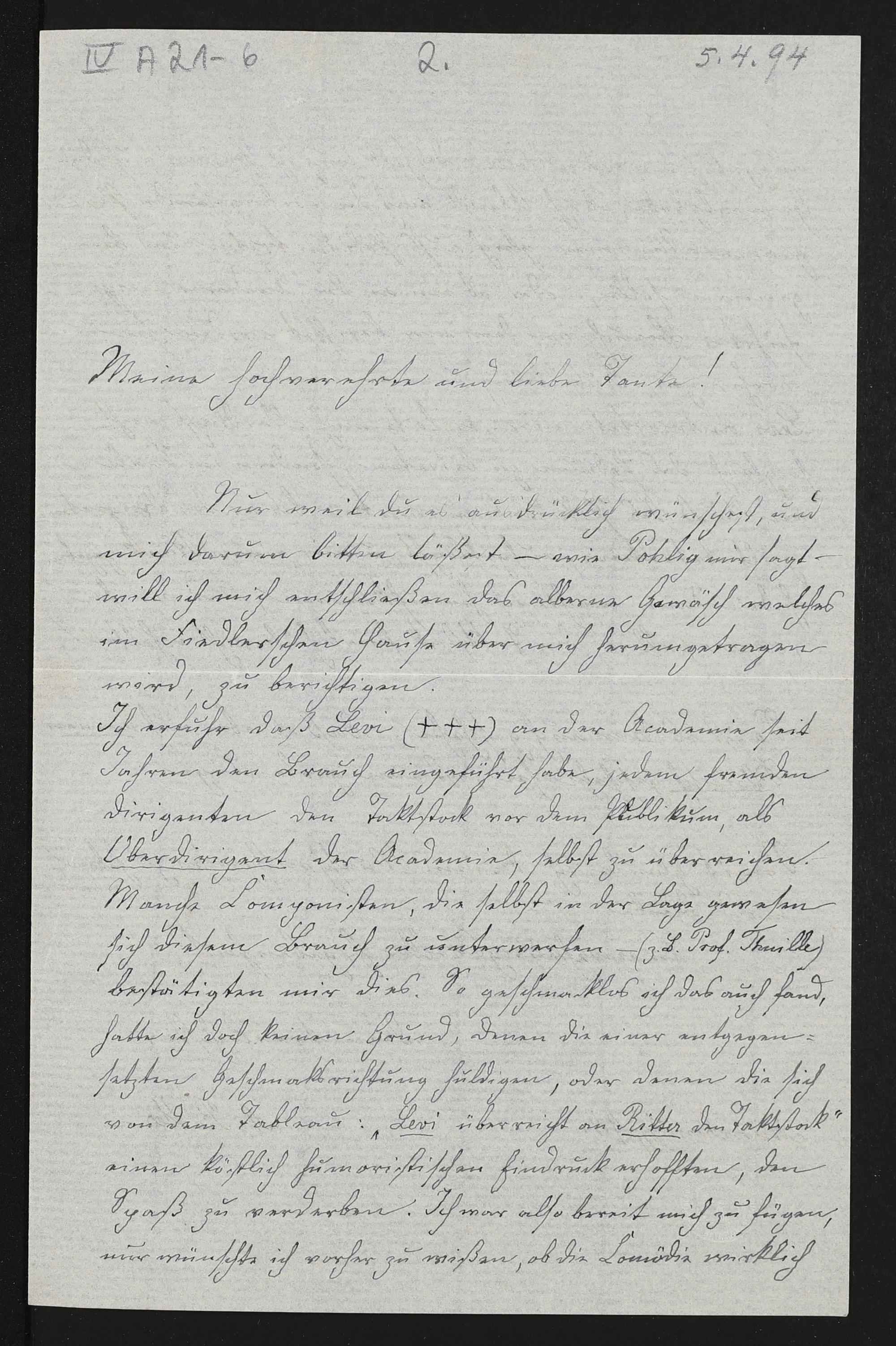 eigenhändiger Brief von A. Ritter an Cosima Wagner