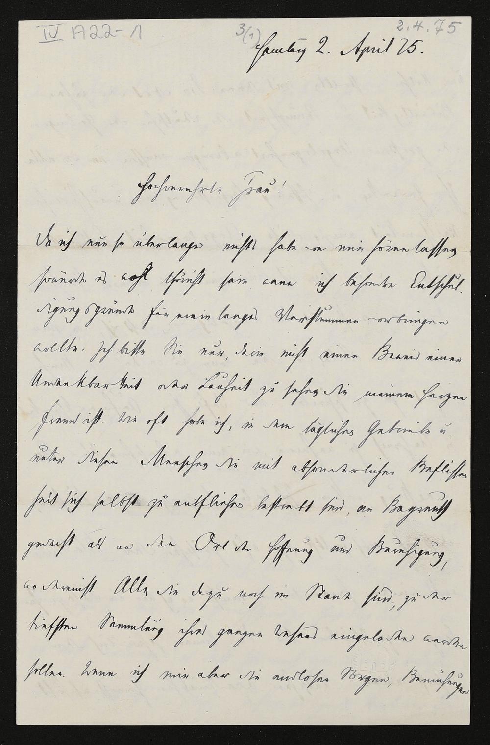 eigenhändiger Brief von Erwin Rohde an Cosima Wagner