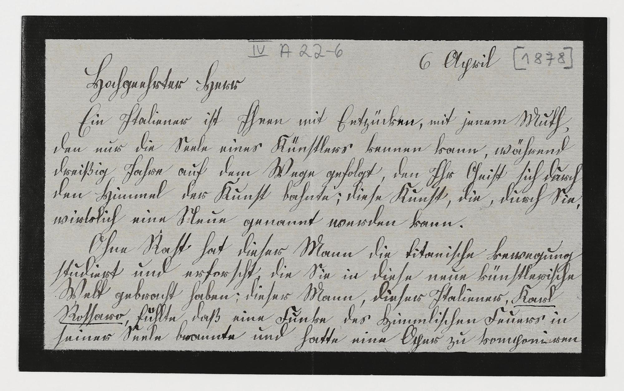 eigenhändige Briefkarte von Sigismondo Rossaro an Richard Wagner