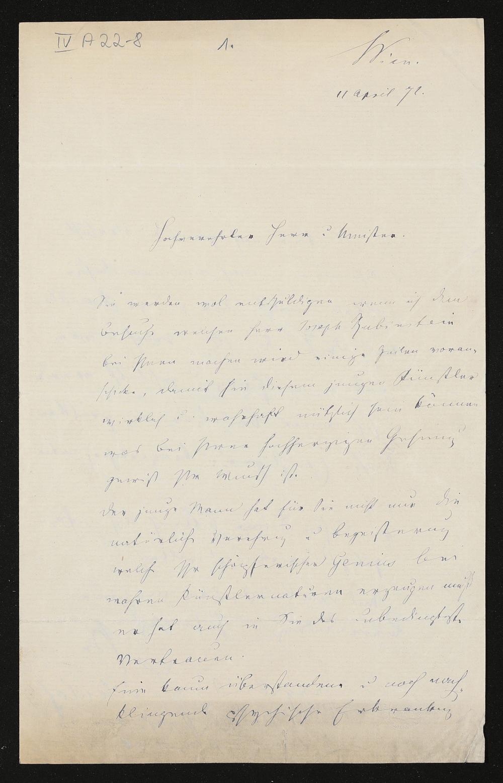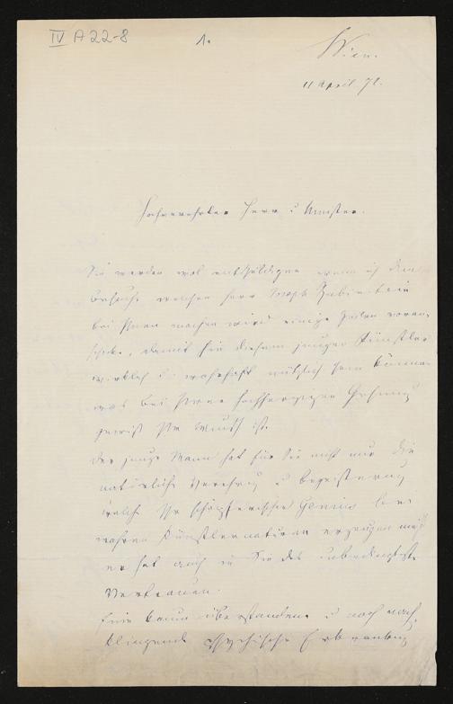 eigenhändiger Brief von Maximilian Leidesdorf an Richard Wagner
