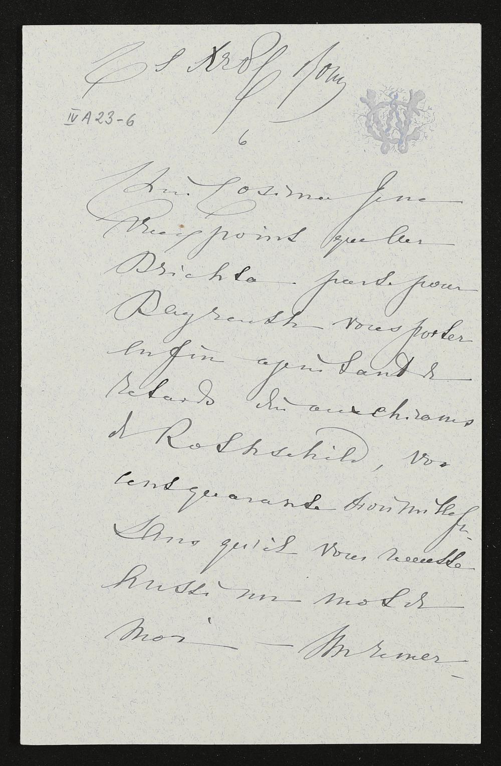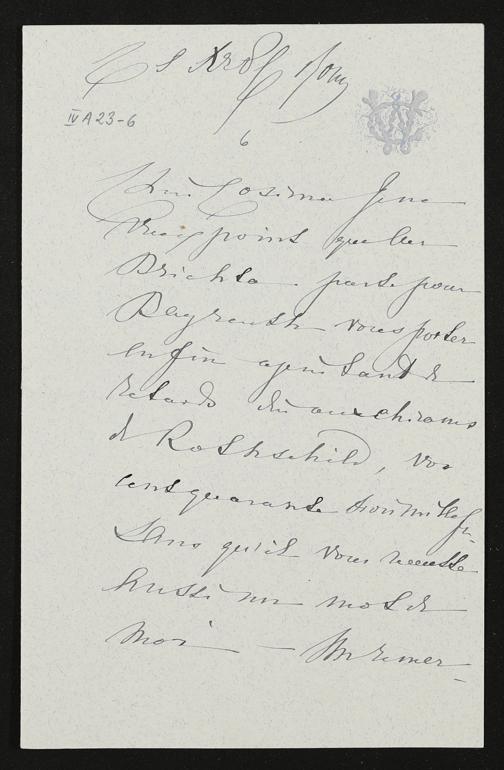 eigenhändiger Brief von Carolyne von Sayn-Wittgenstein an Cosima Wagner