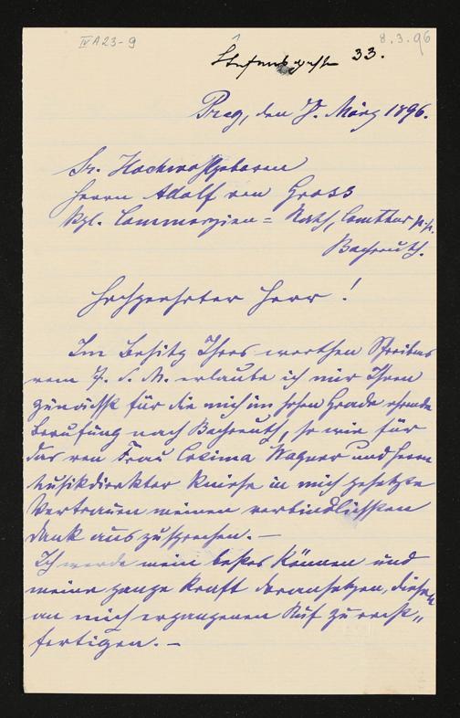 eigenhändiger Brief von Gustav Seidel an Adolf von Gross