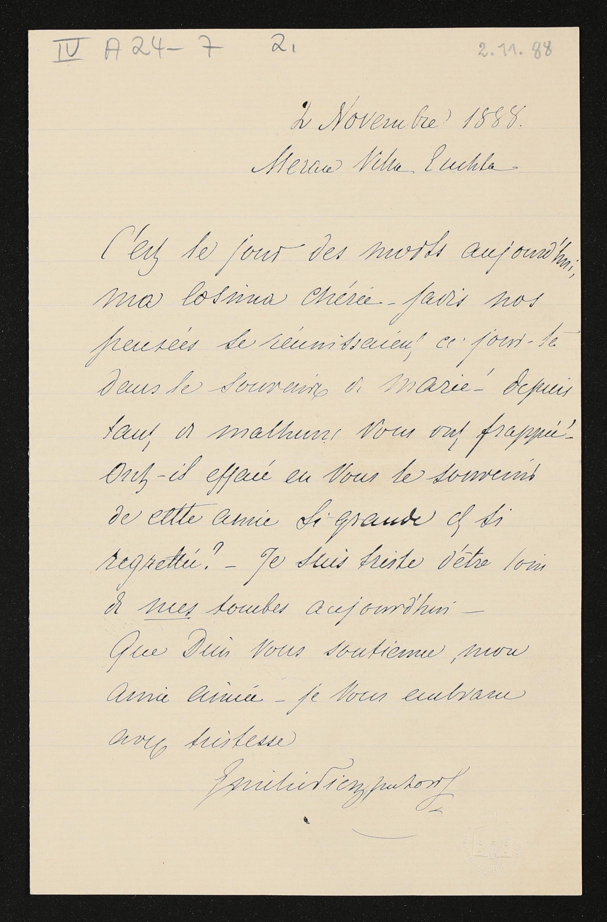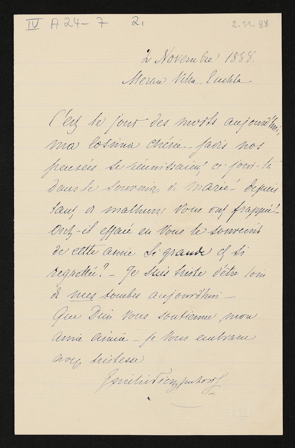 eigenhändiger Brief von Emilie Sierzpukowska an Cosima Wagner