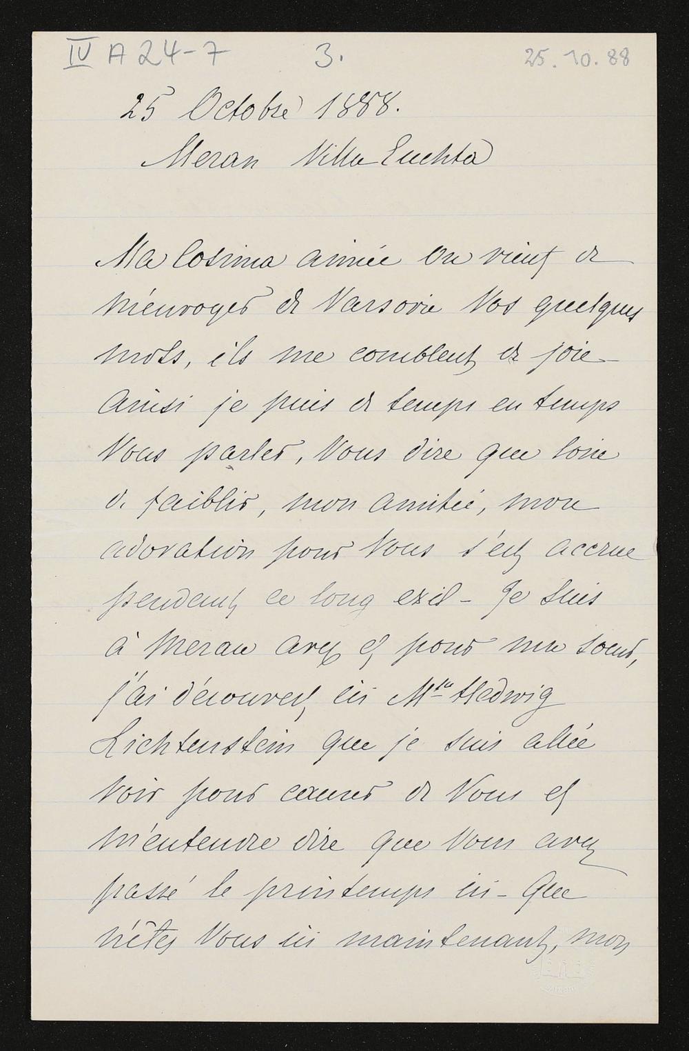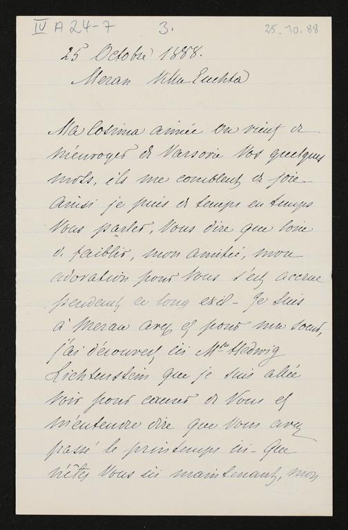 eigenhändiger Brief von Emilie Sierzpukowska an Cosima Wagner