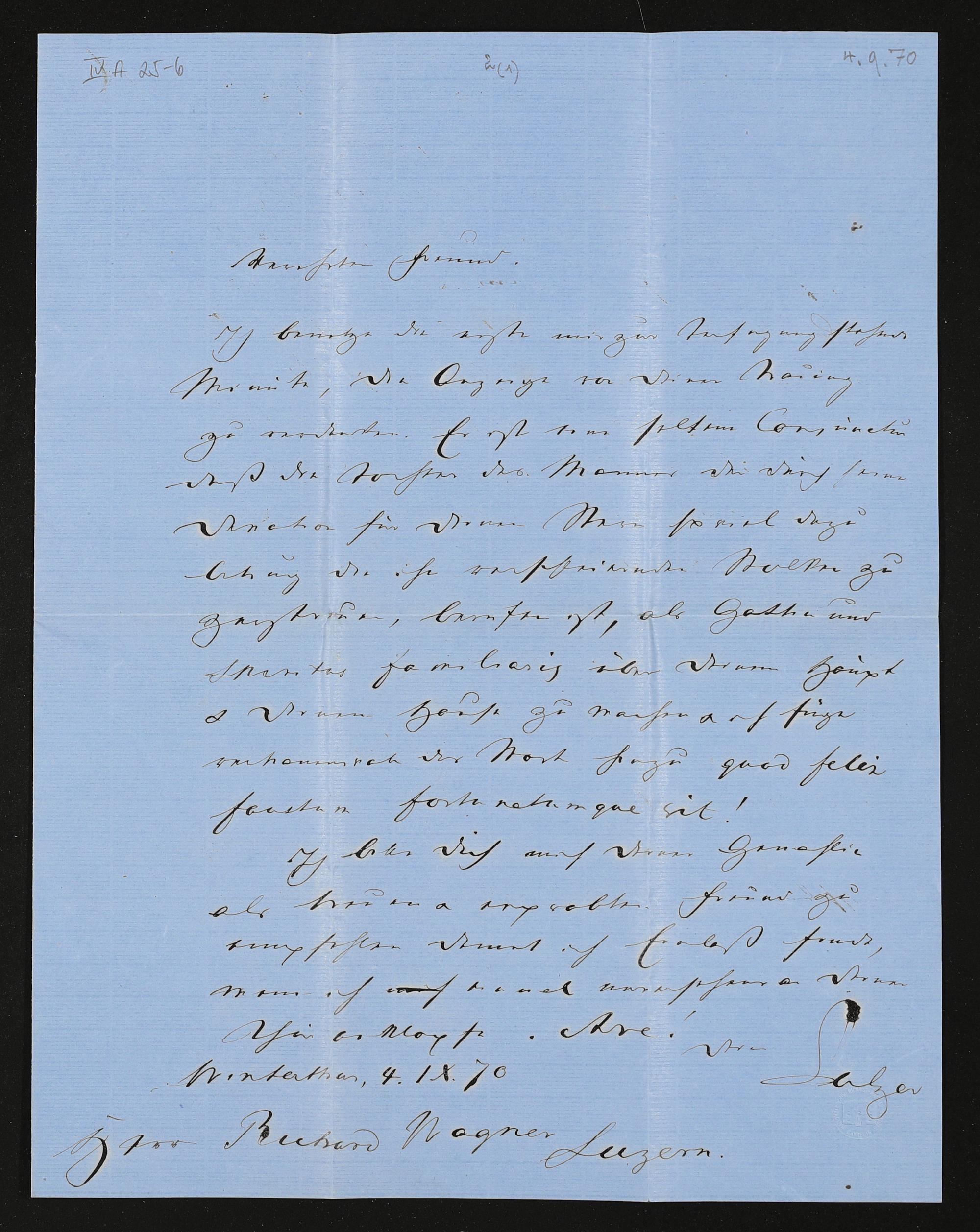 eigenhändiger Brief von Jakob Sulzer an Richard Wagner
