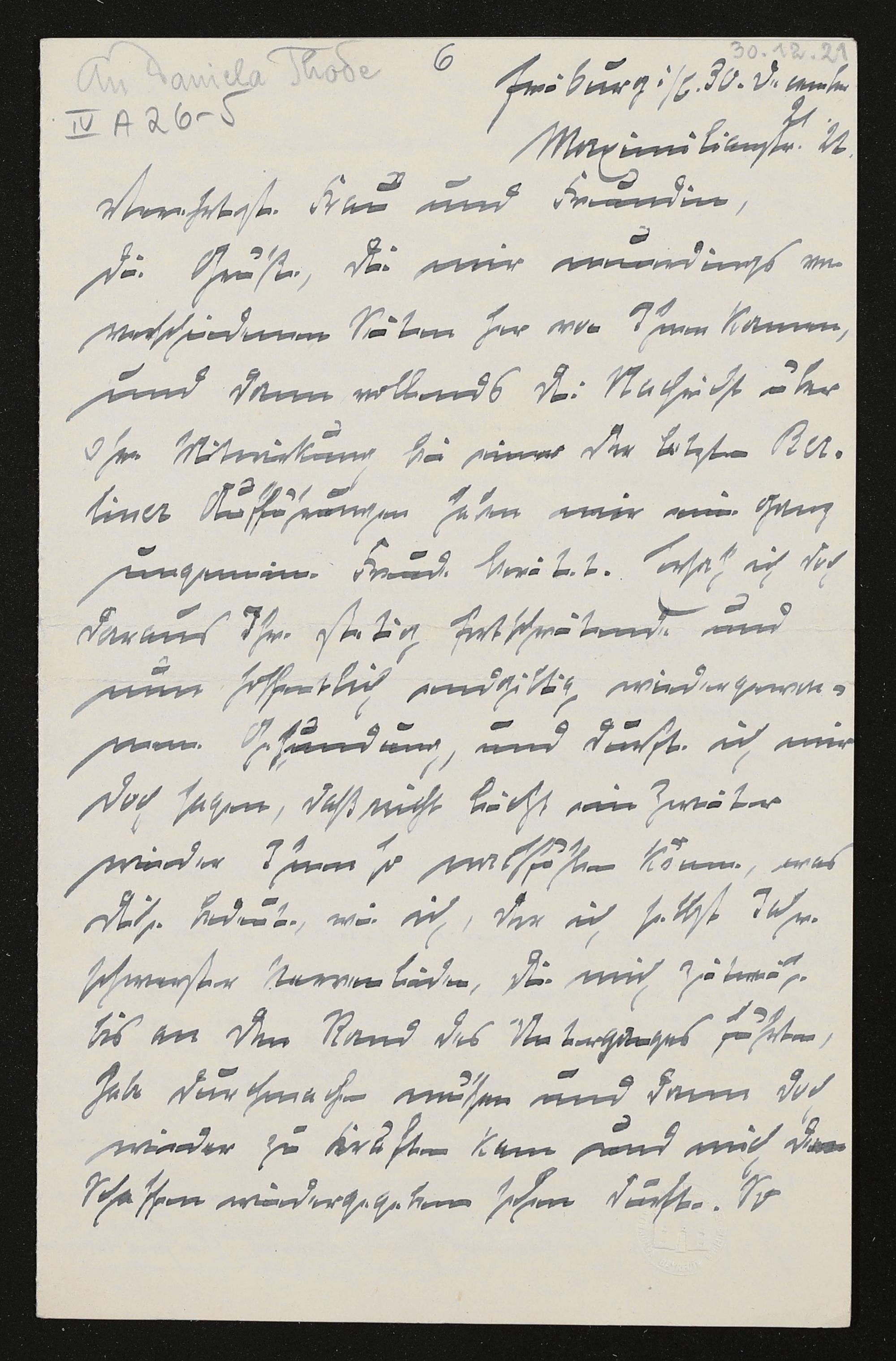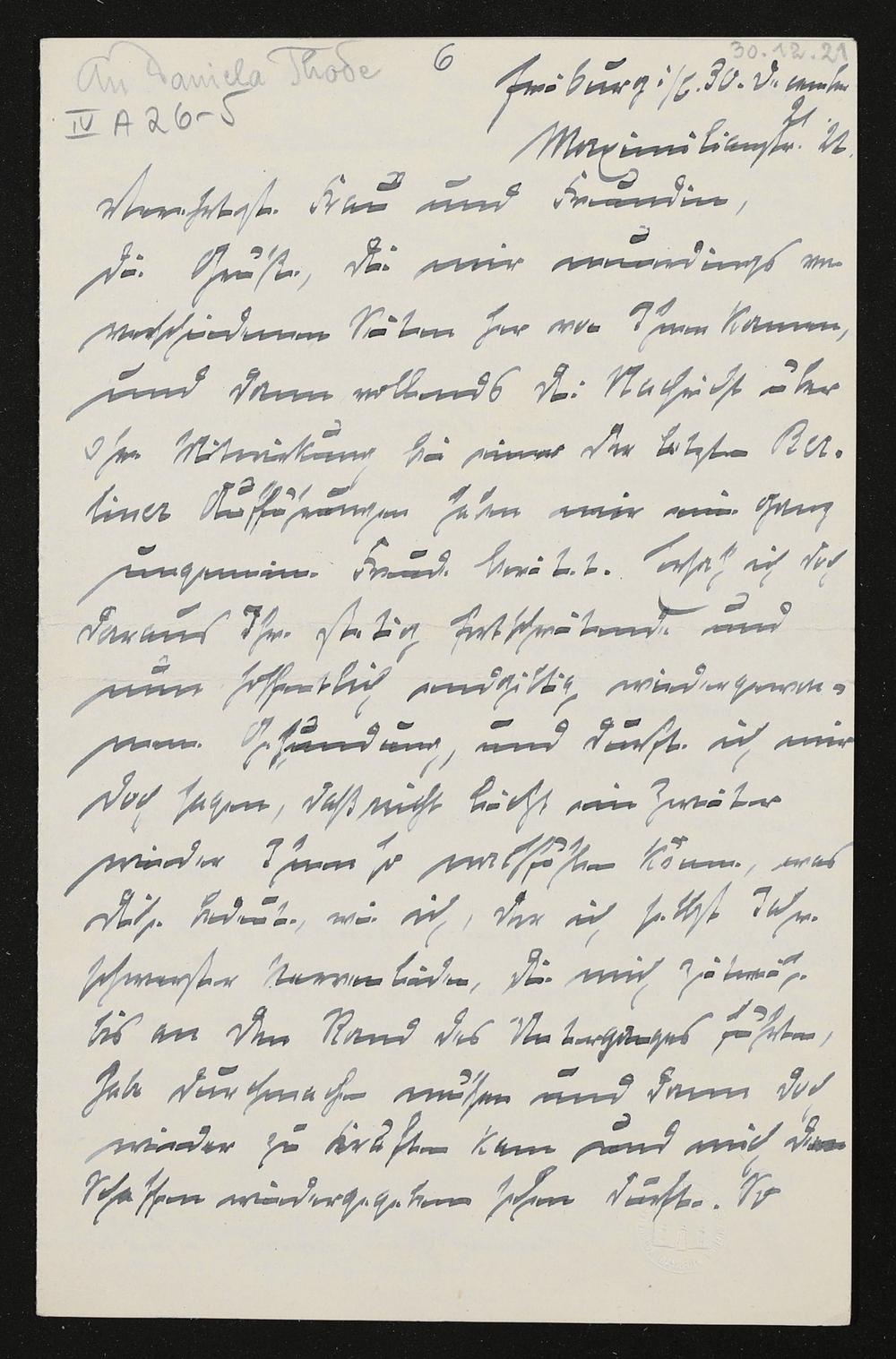 eigenhändiger Brief von Ludwig Schemann an Daniela Thode