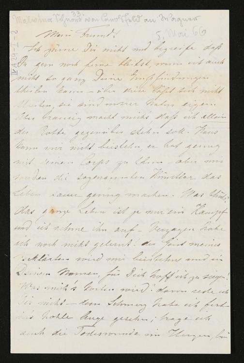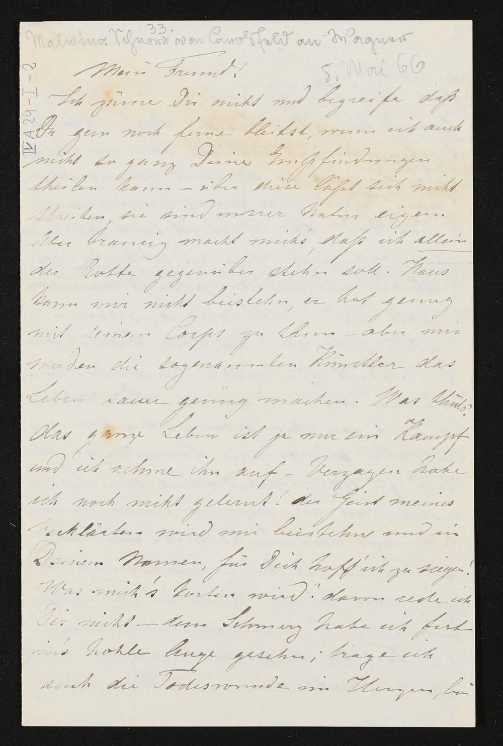 eigenhändiger Brief von Malvina Schnorr von Carolsfeld an Richard Wagner