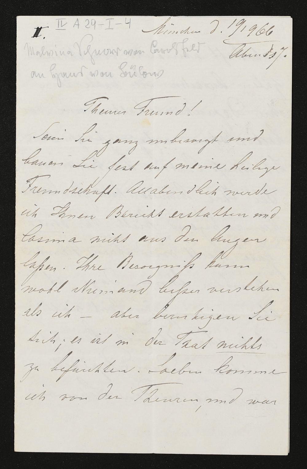 eigenhändiger Brief von Malvina Schnorr von Carolsfeld an Hans von Bülow