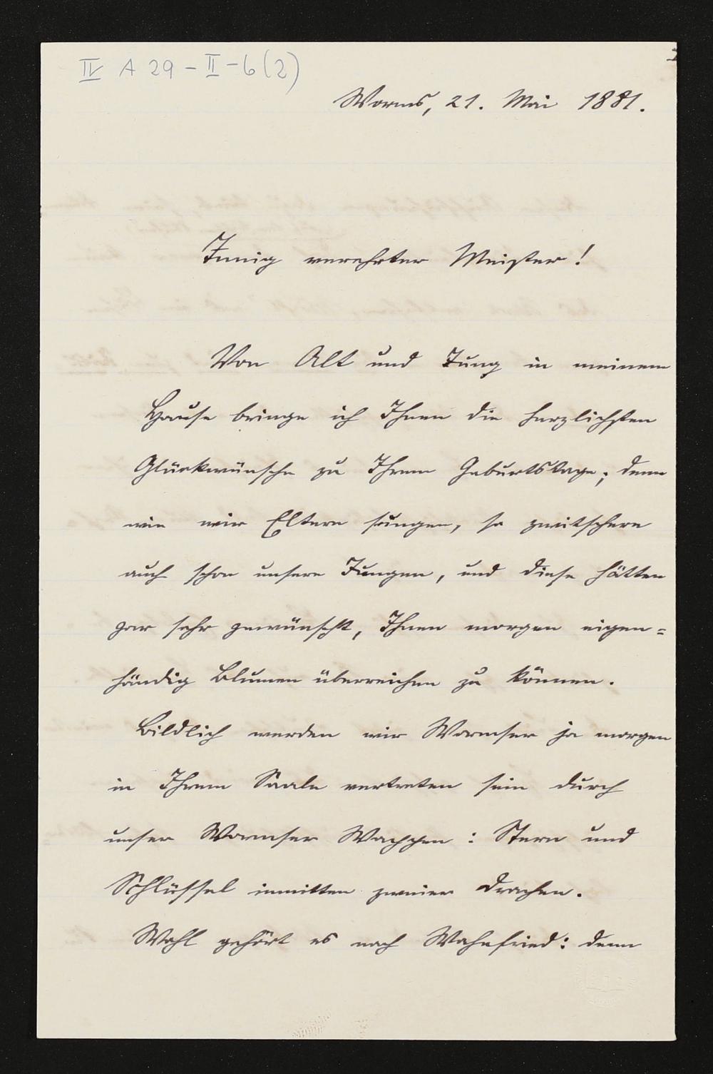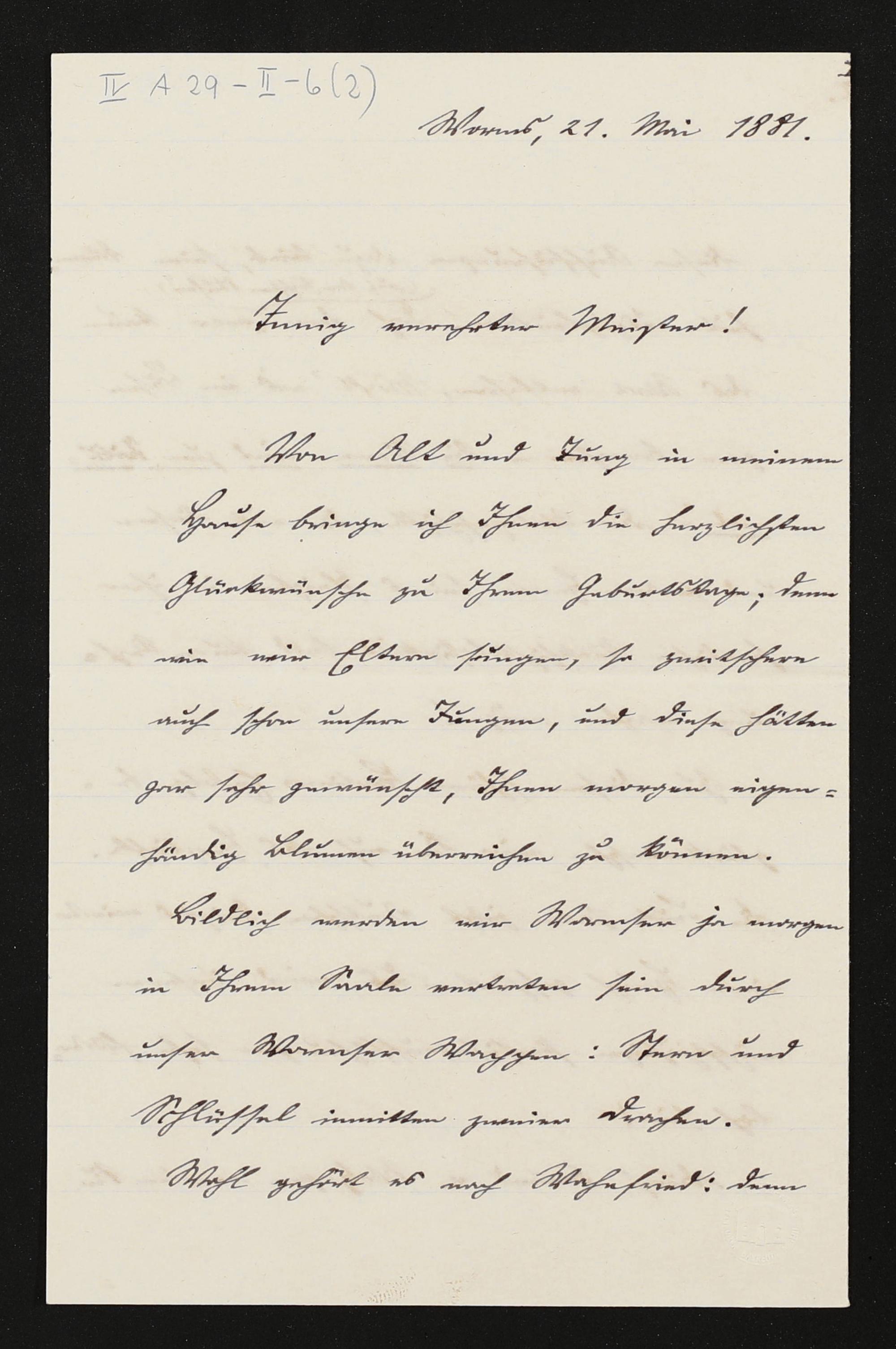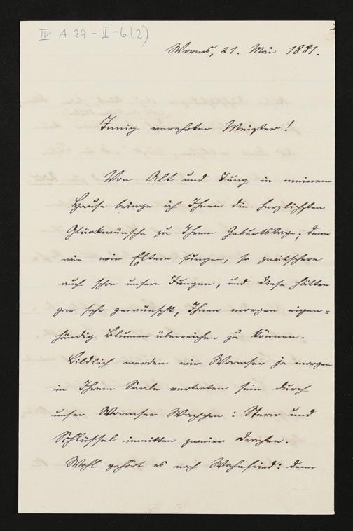 eigenhändiger Brief von Friedrich von Schoen an Richard Wagner