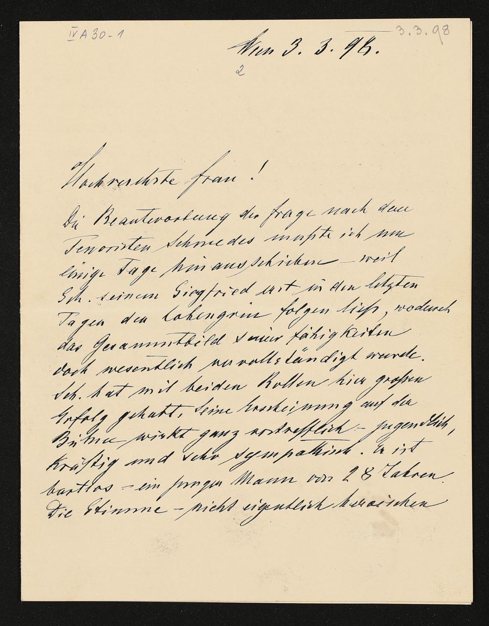 eigenhändiger Brief von Gustav Schönaich an Cosima Wagner