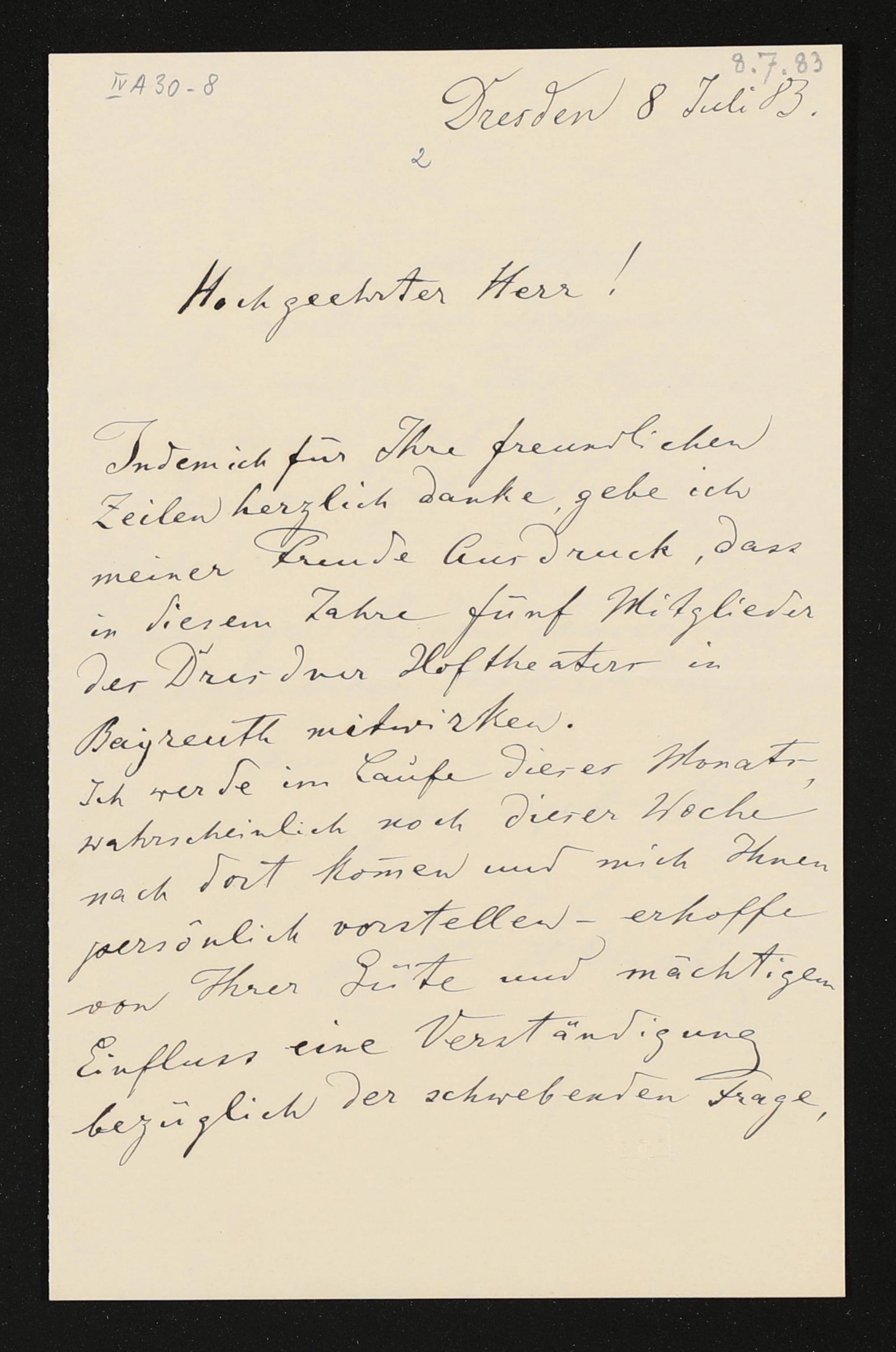 eigenhändiger Brief von Ernst von Schuch einen unbekannten Empfänger