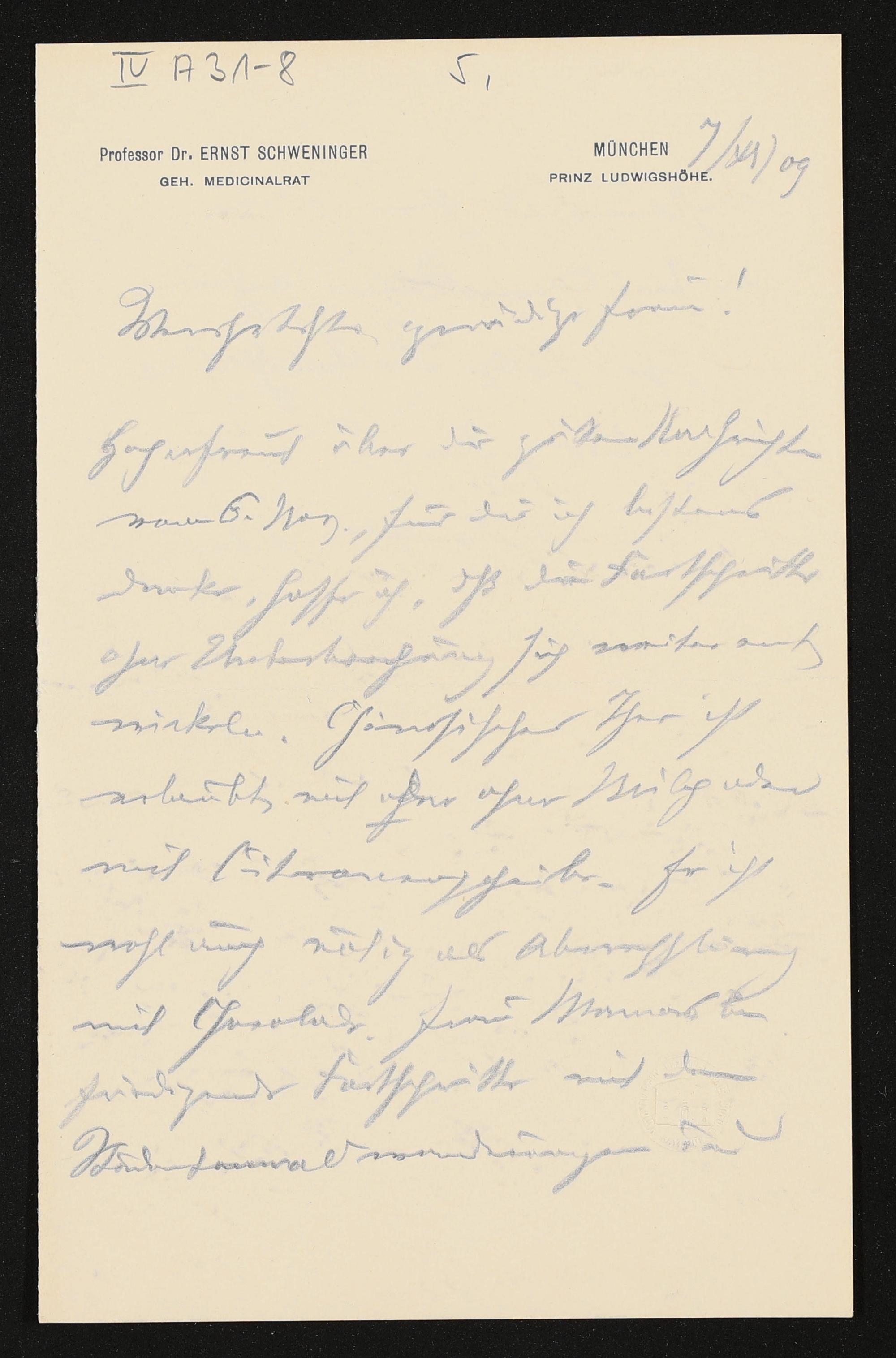 eigenhändiger Brief von Ernst Schwenninger an Eva Chamberlain