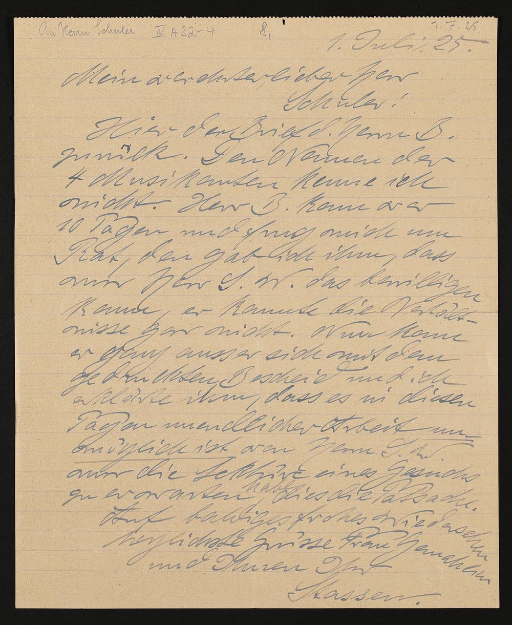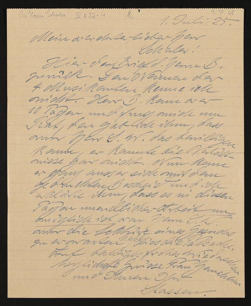 eigenhändiger Brief von Franz Stassen an Friedrich Wilhelm Schuler