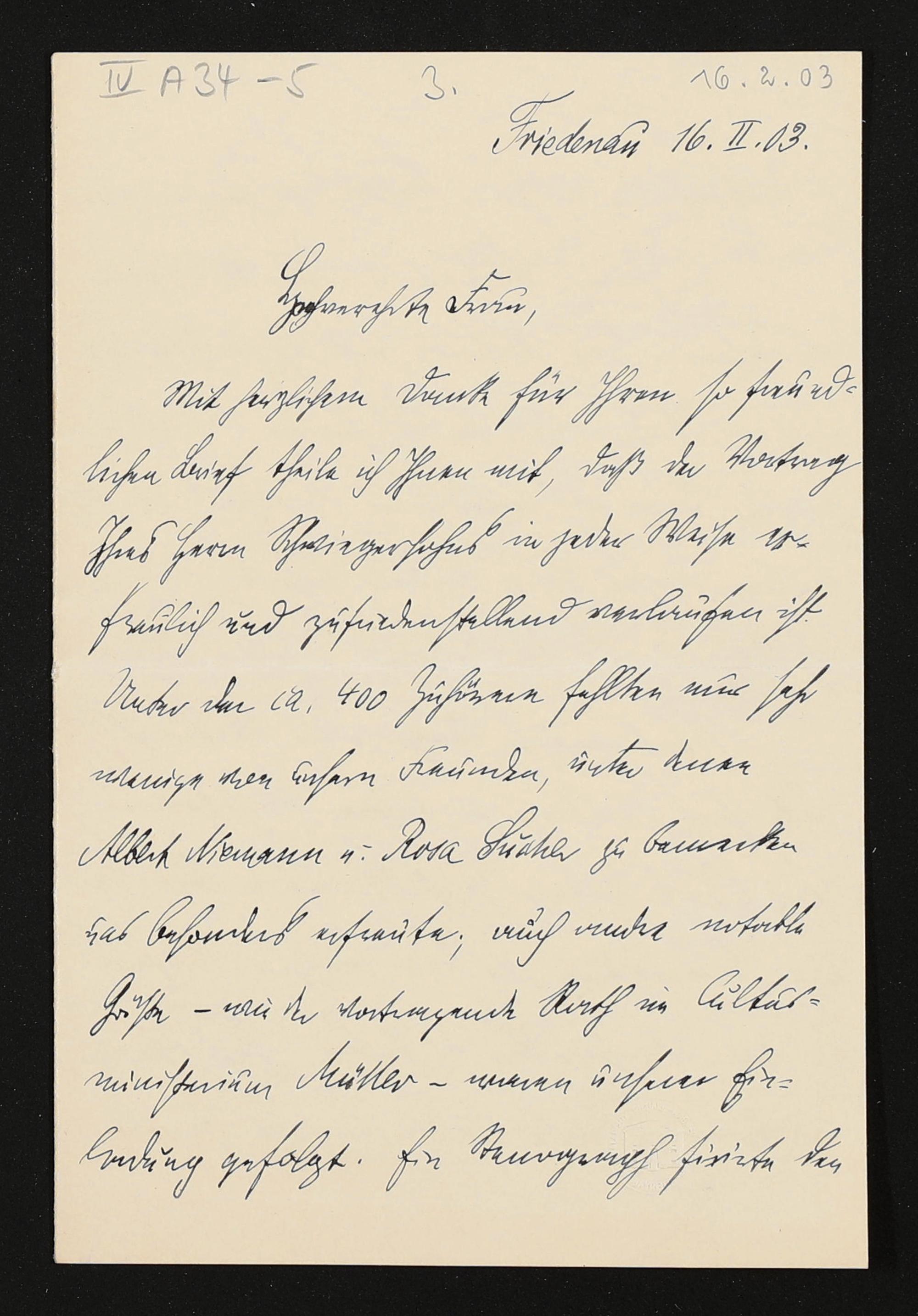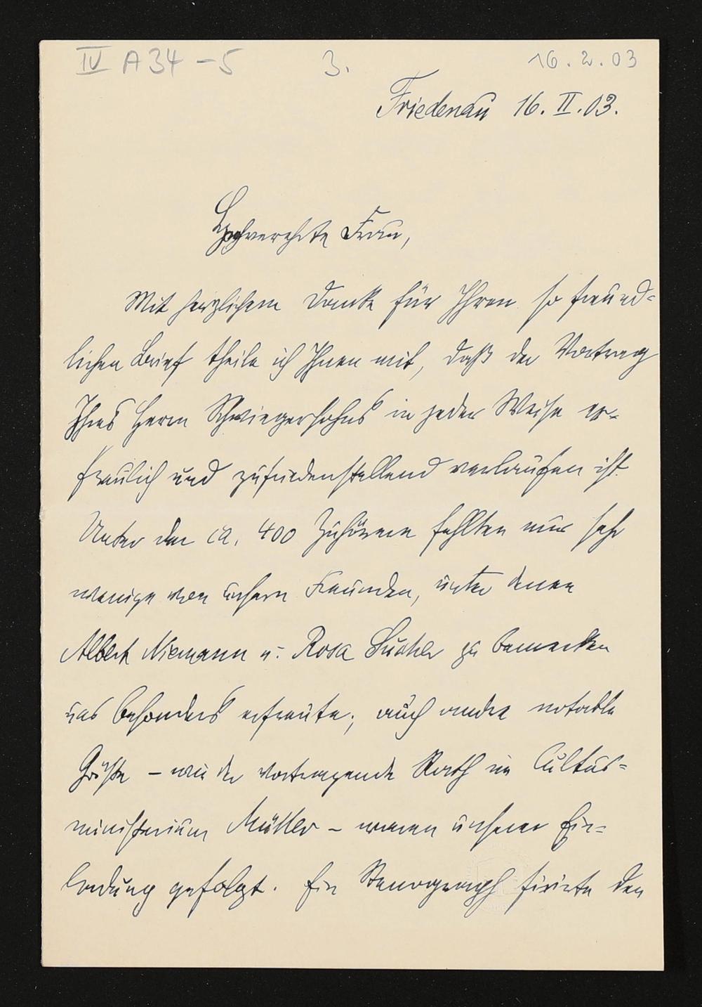eigenhändiger Brief von Richard Sternfeld an Cosima Wagner