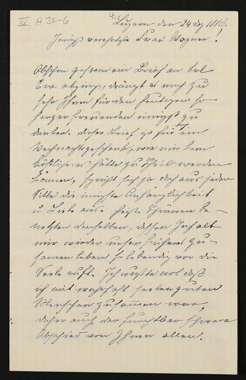 eigenhändiger Brief von Verena Stocker an Cosima Wagner