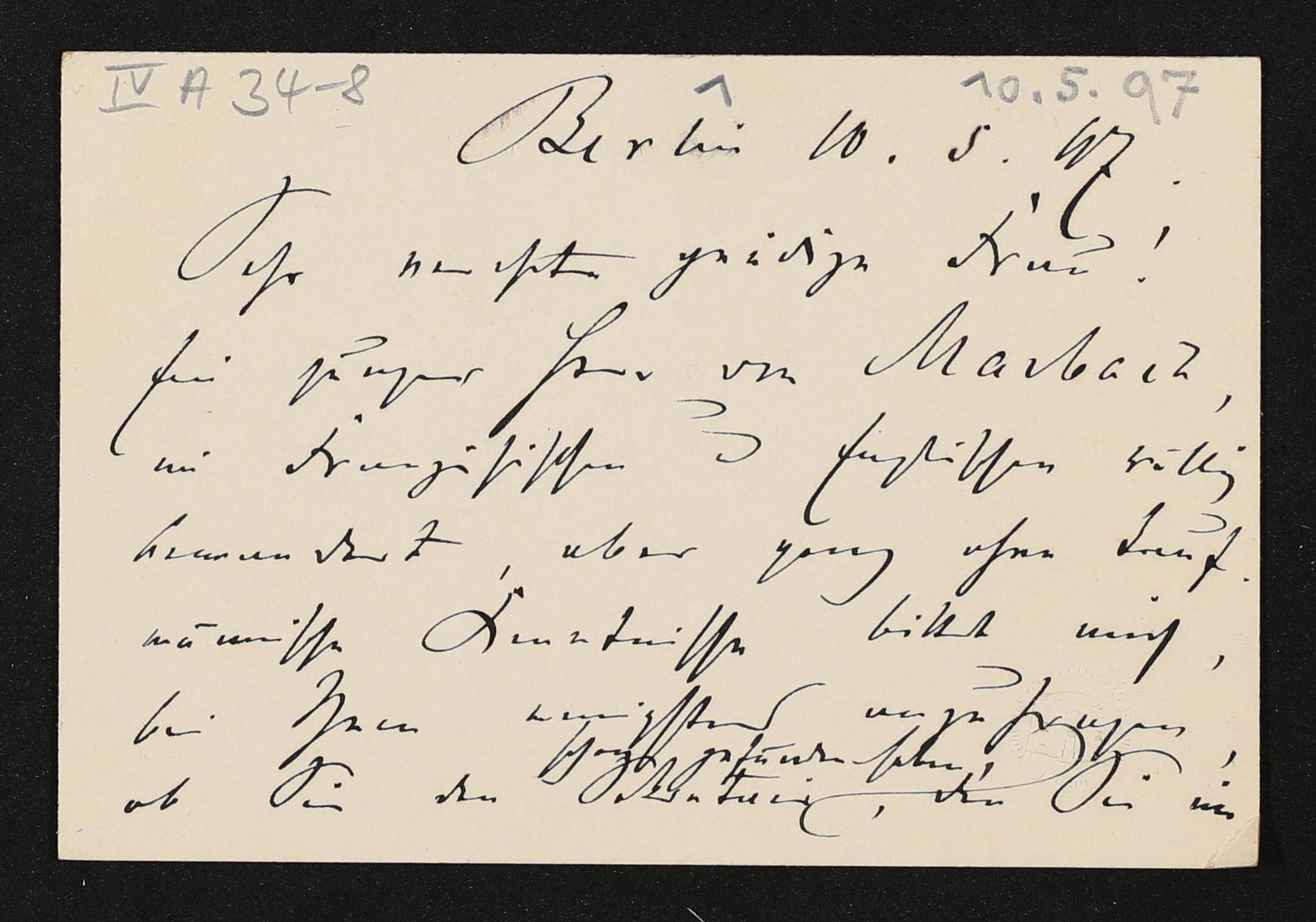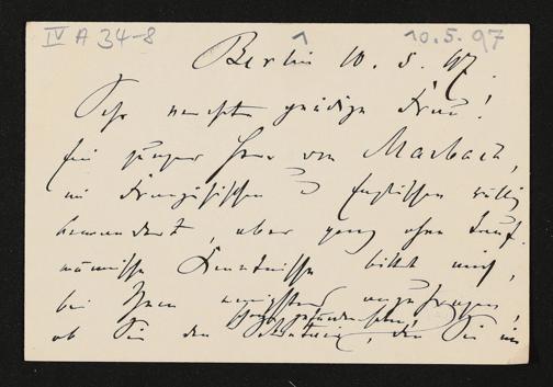 eigenhändige Briefkarte von Adolph Stoecker an Cosima Wagner