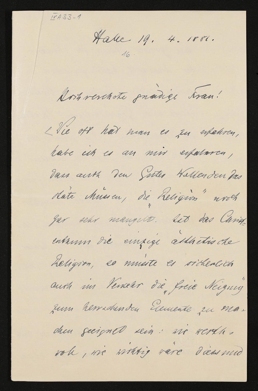eigenhändiger Brief von Freiherr Heinrich von Stein an Cosima Wagner