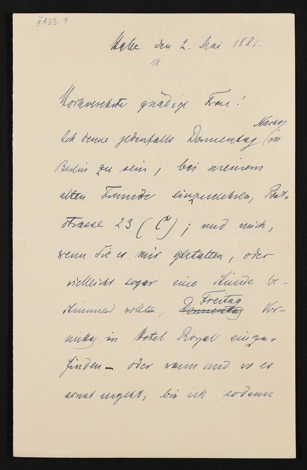 eigenhändiger Brief von Freiherr Heinrich von Stein an Cosima Wagner