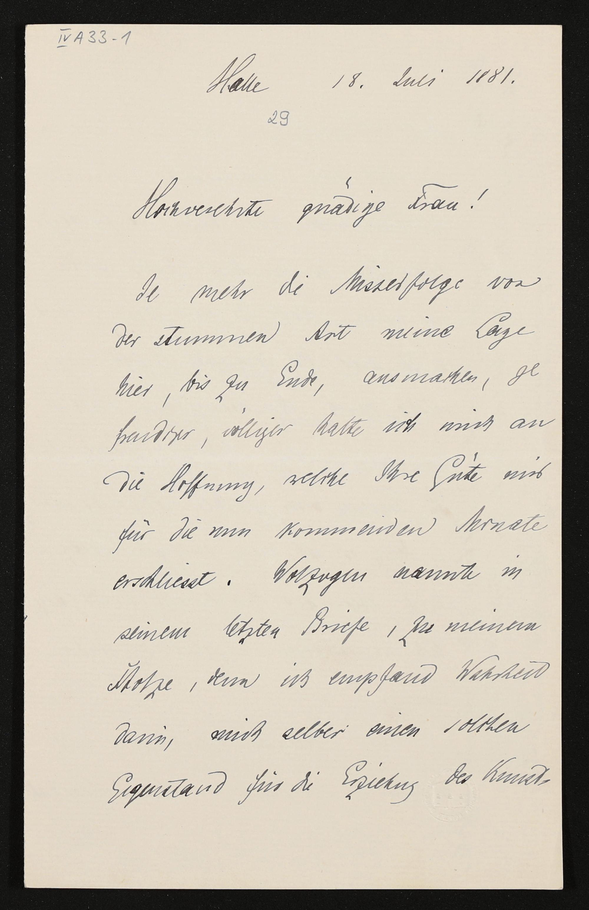eigenhändiger Brief von Freiherr Heinrich von Stein an Cosima Wagner