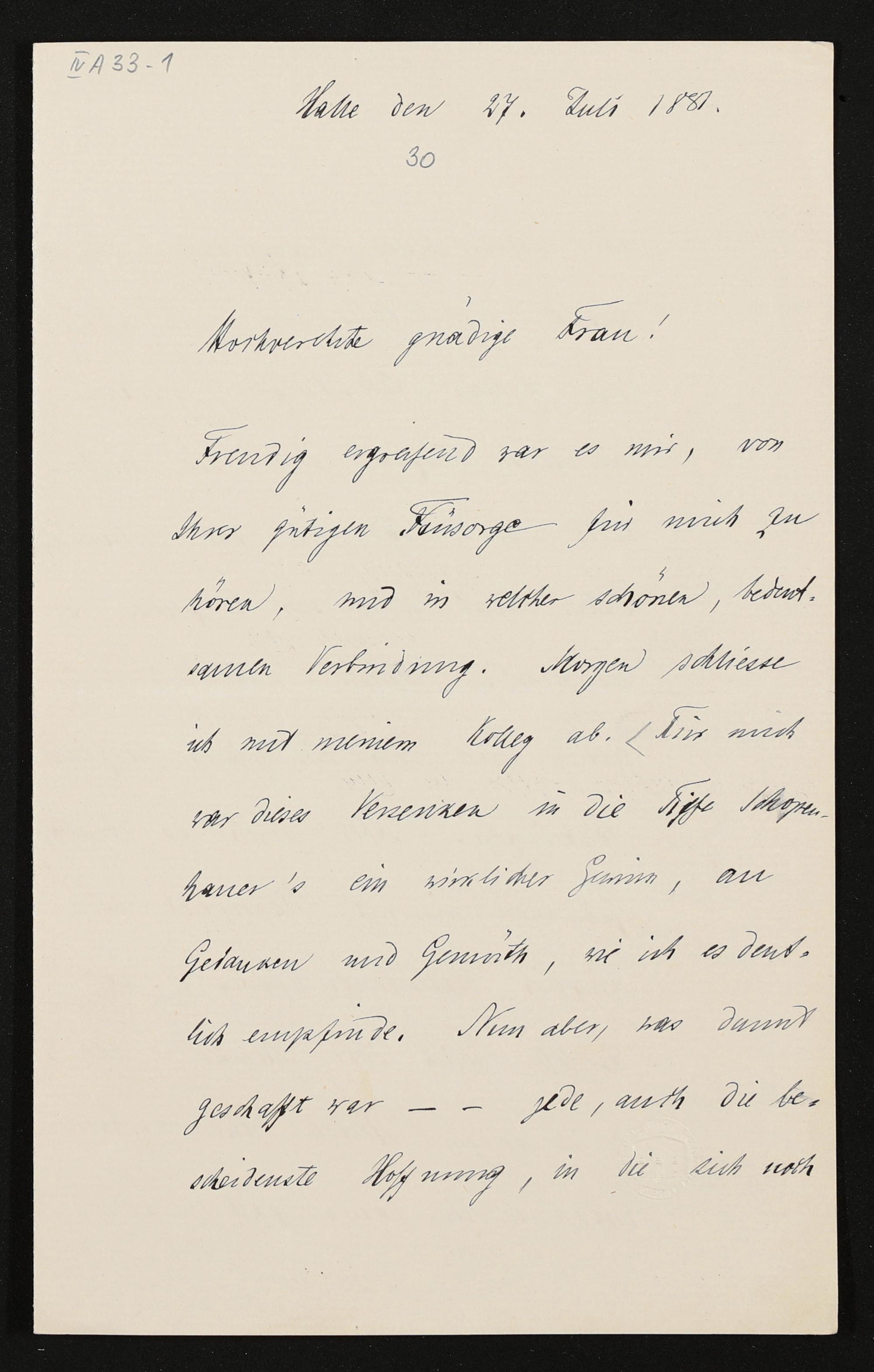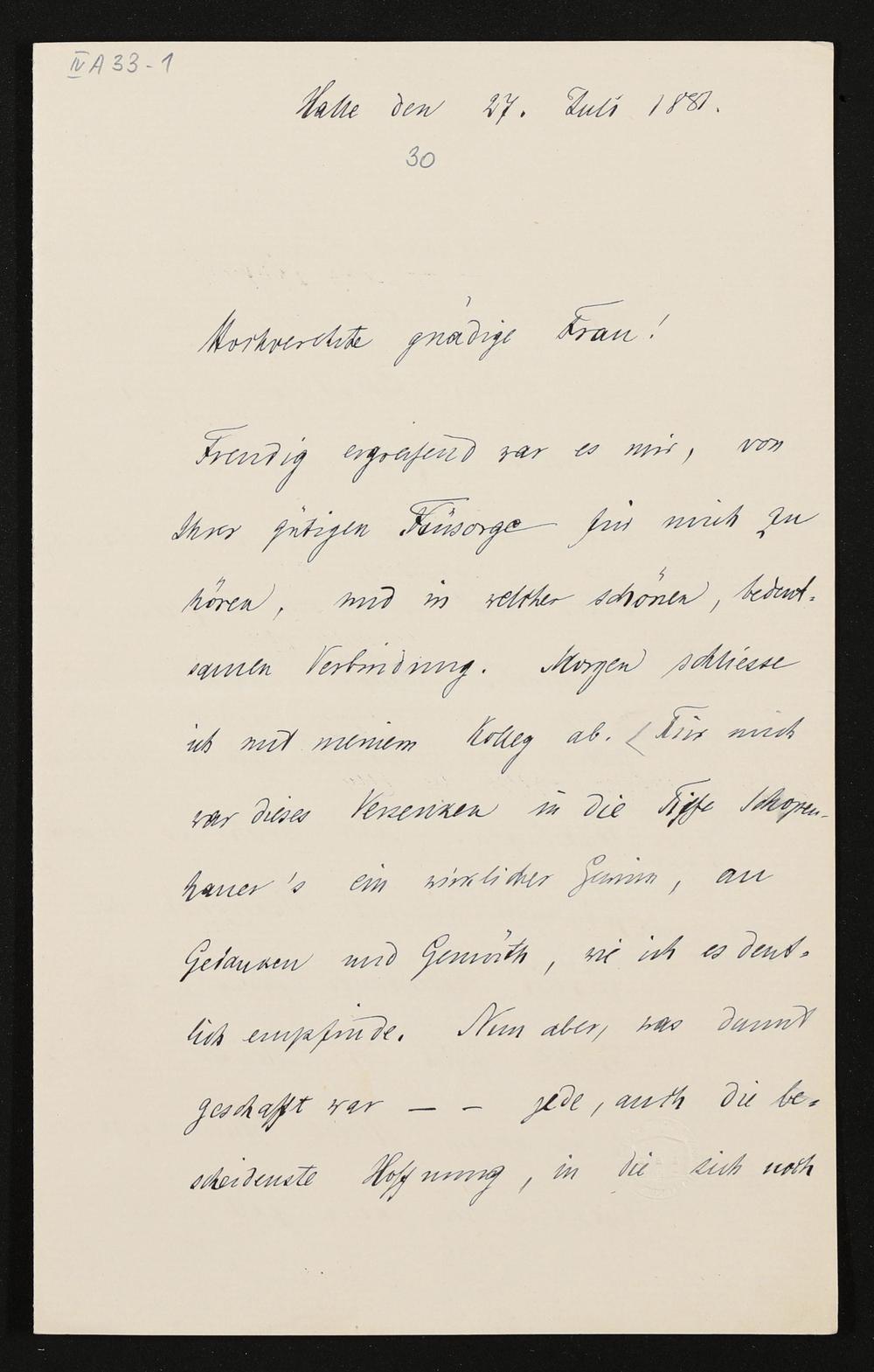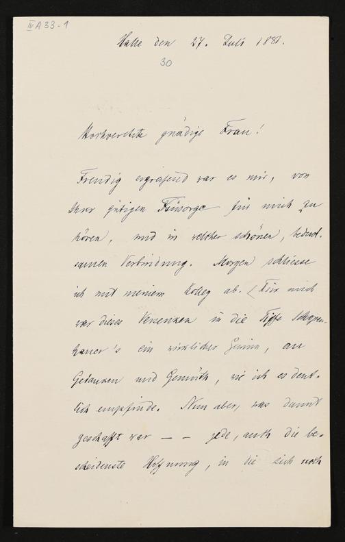 eigenhändiger Brief von Freiherr Heinrich von Stein an Cosima Wagner
