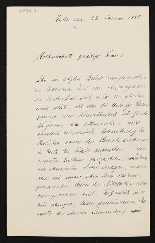eigenhändiger Brief von Freiherr Heinrich von Stein an Cosima Wagner