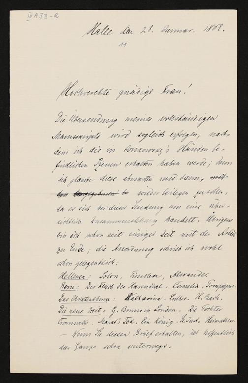 eigenhändiger Brief von Freiherr Heinrich von Stein an Cosima Wagner