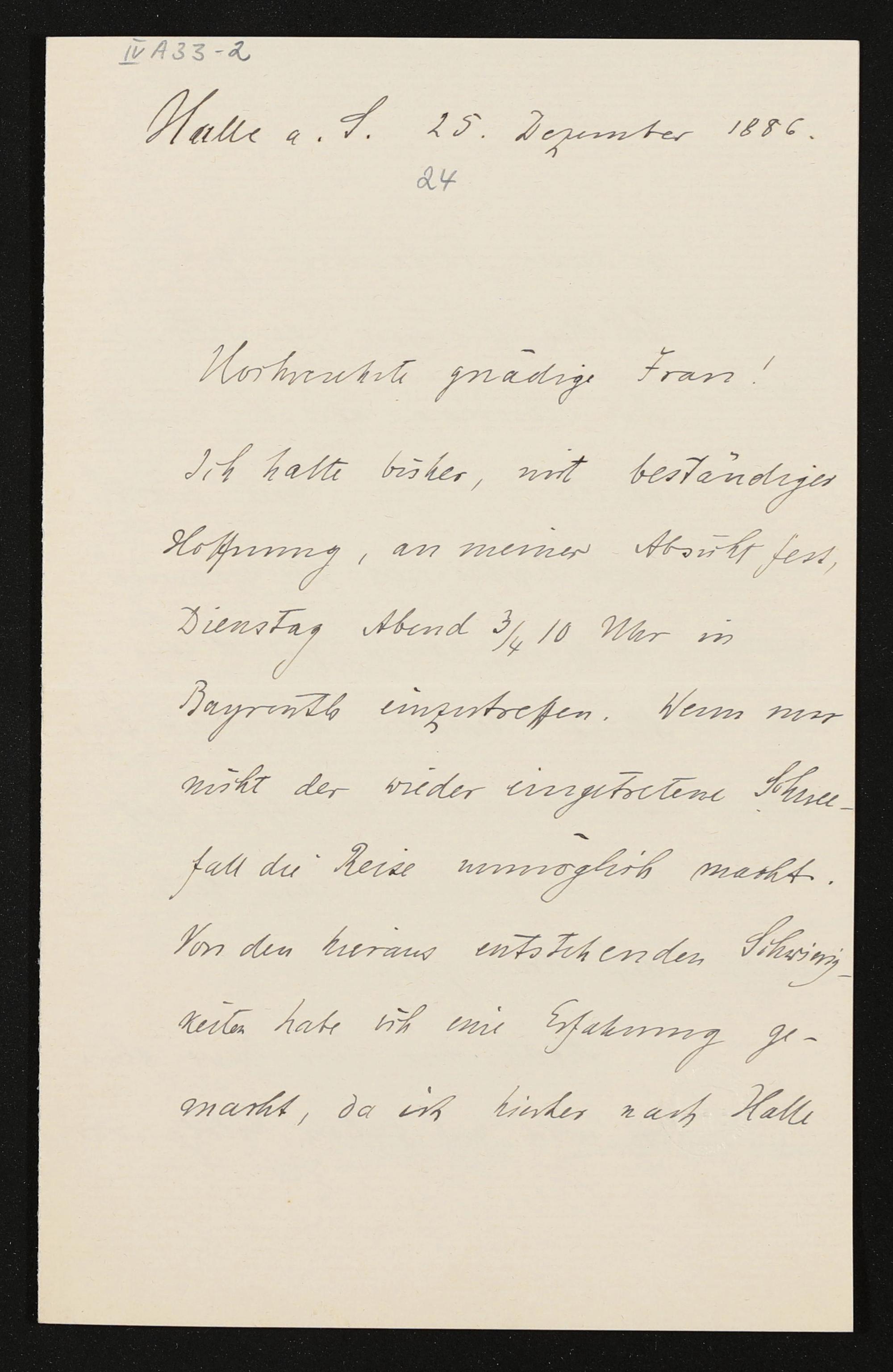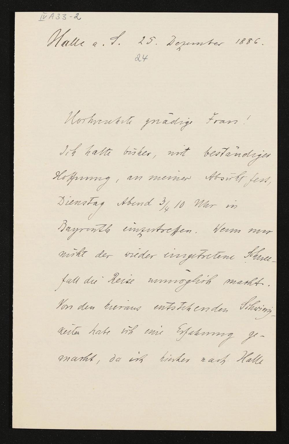 eigenhändiger Brief von Freiherr Heinrich von Stein an Cosima Wagner