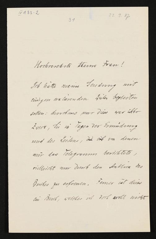 eigenhändiger Brief von Freiherr Heinrich von Stein an Cosima Wagner