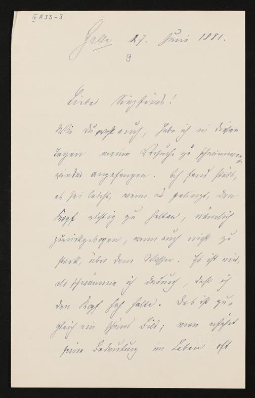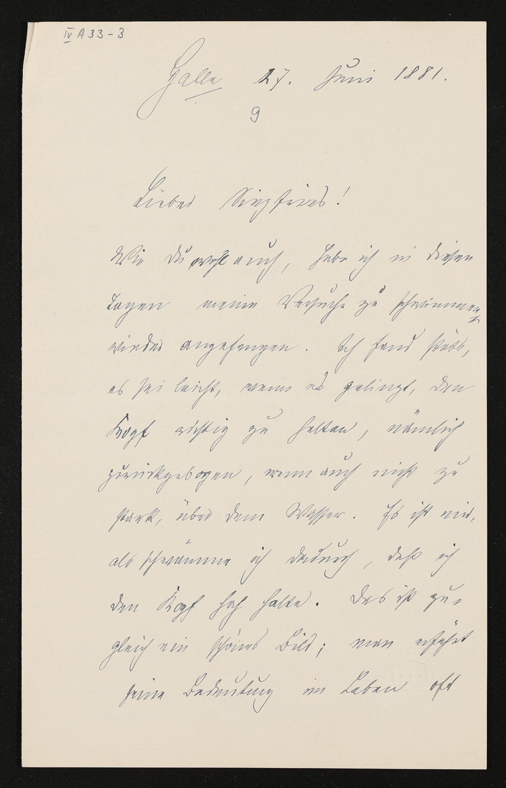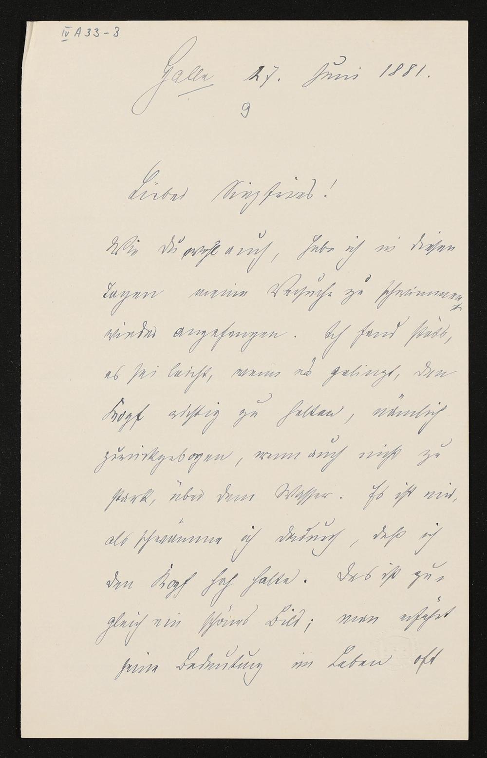 eigenhändiger Brief von Freiherr Heinrich von Stein an Siegfried Wagner