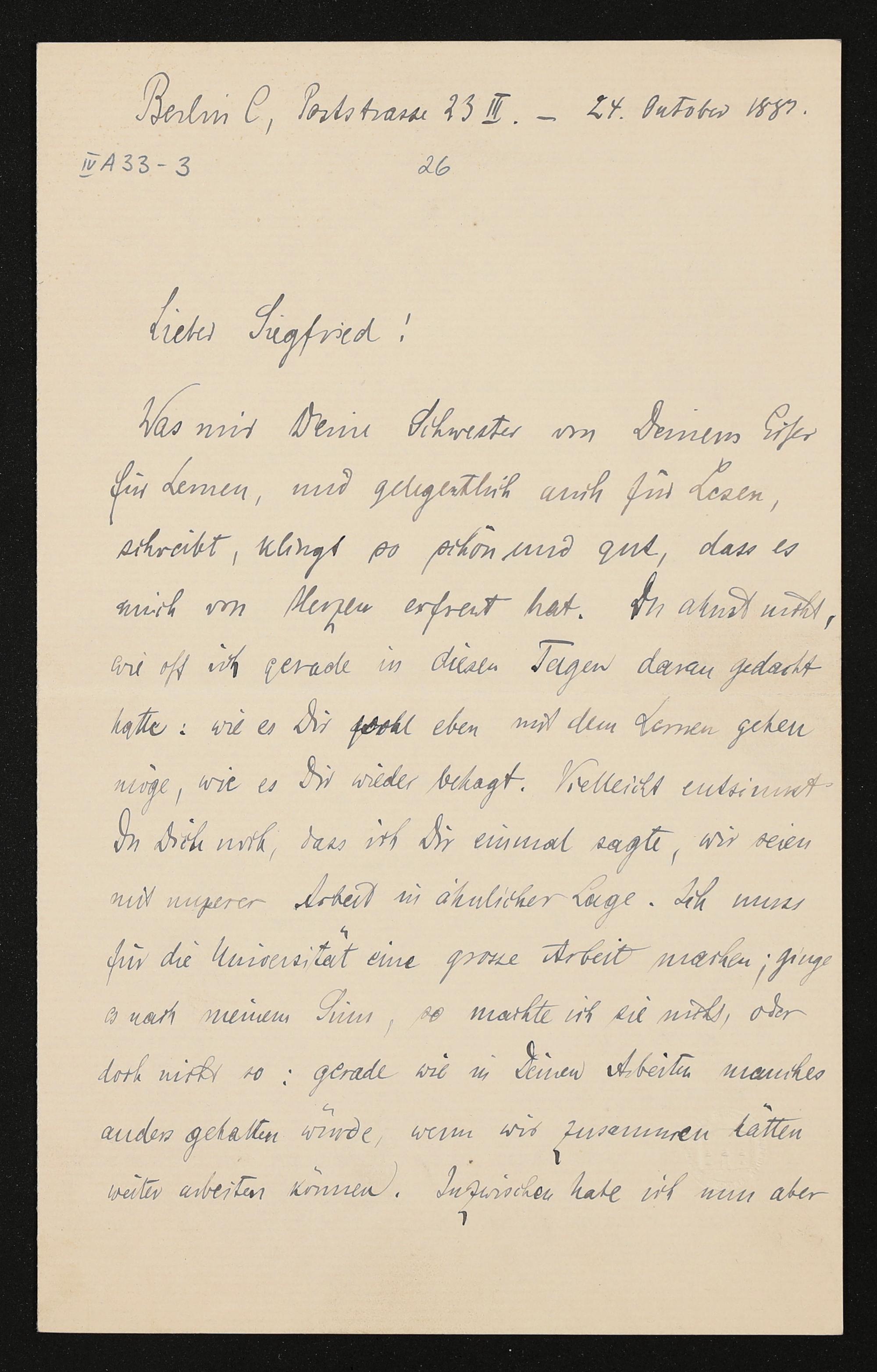 eigenhändiger Brief von Heinrich von Stein an Siegfried Wagner