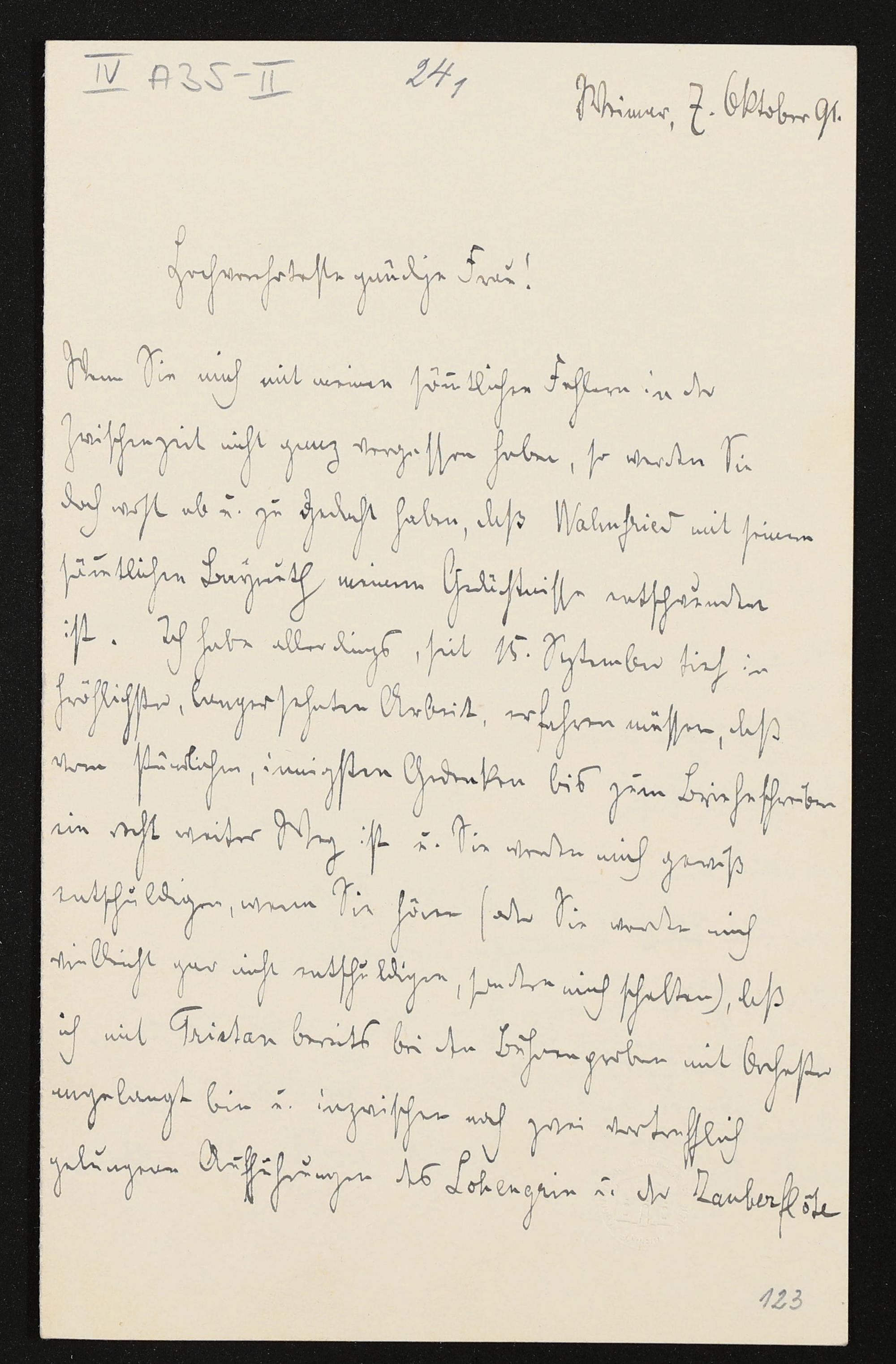 eigenhändiger Brief von Richard Strauss an Cosima Wagner
