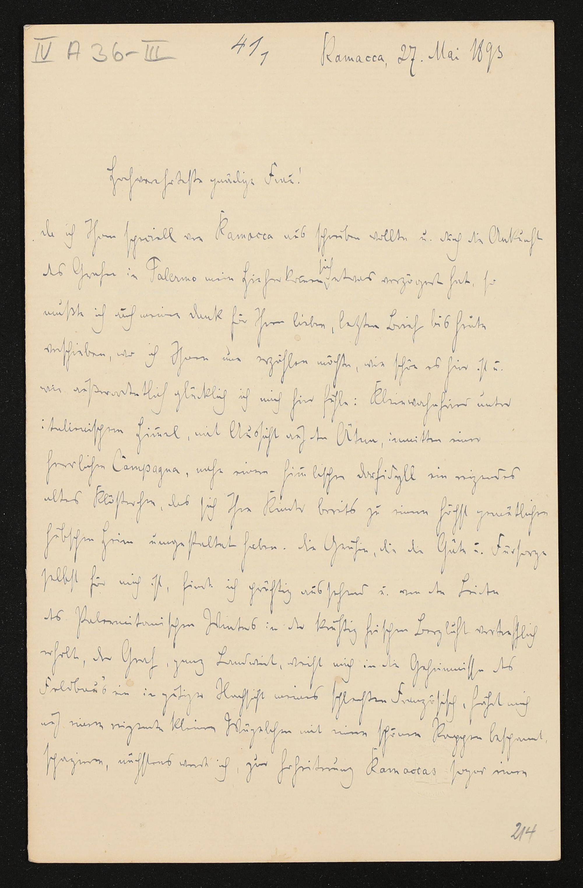 eigenhändiger Brief von Richard Strauss an Cosima Wagner