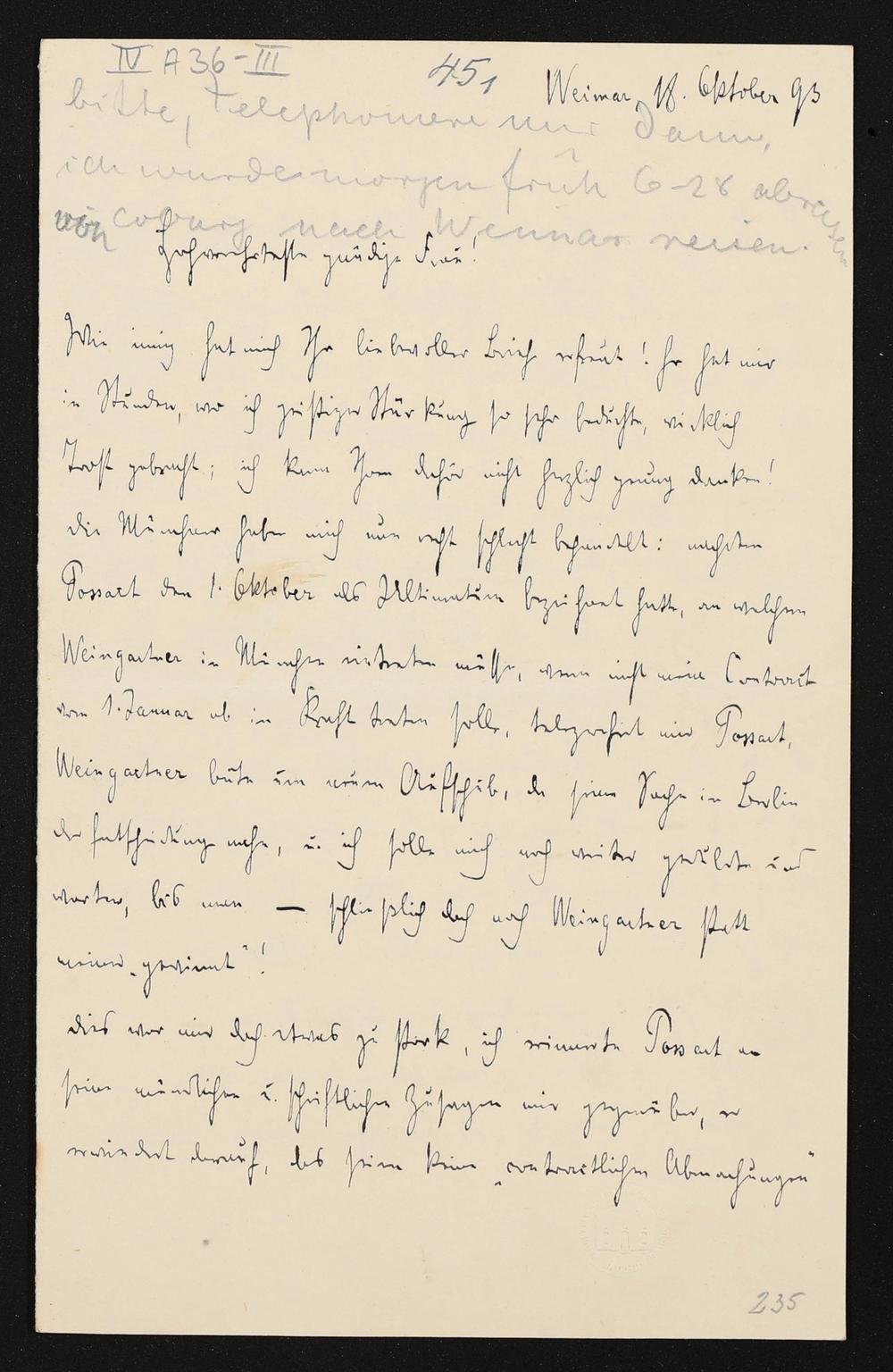 eigenhändiger Brief von Richard Strauss an Cosima Wagner