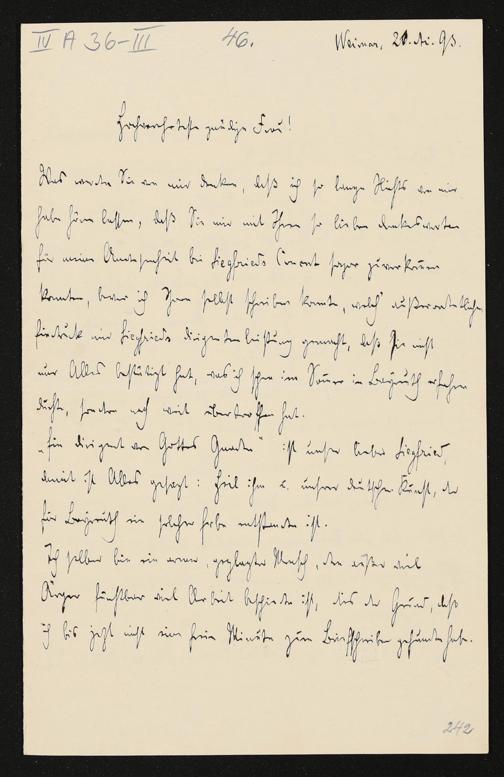 eigenhändiger Brief von Richard Strauss an Cosima Wagner
