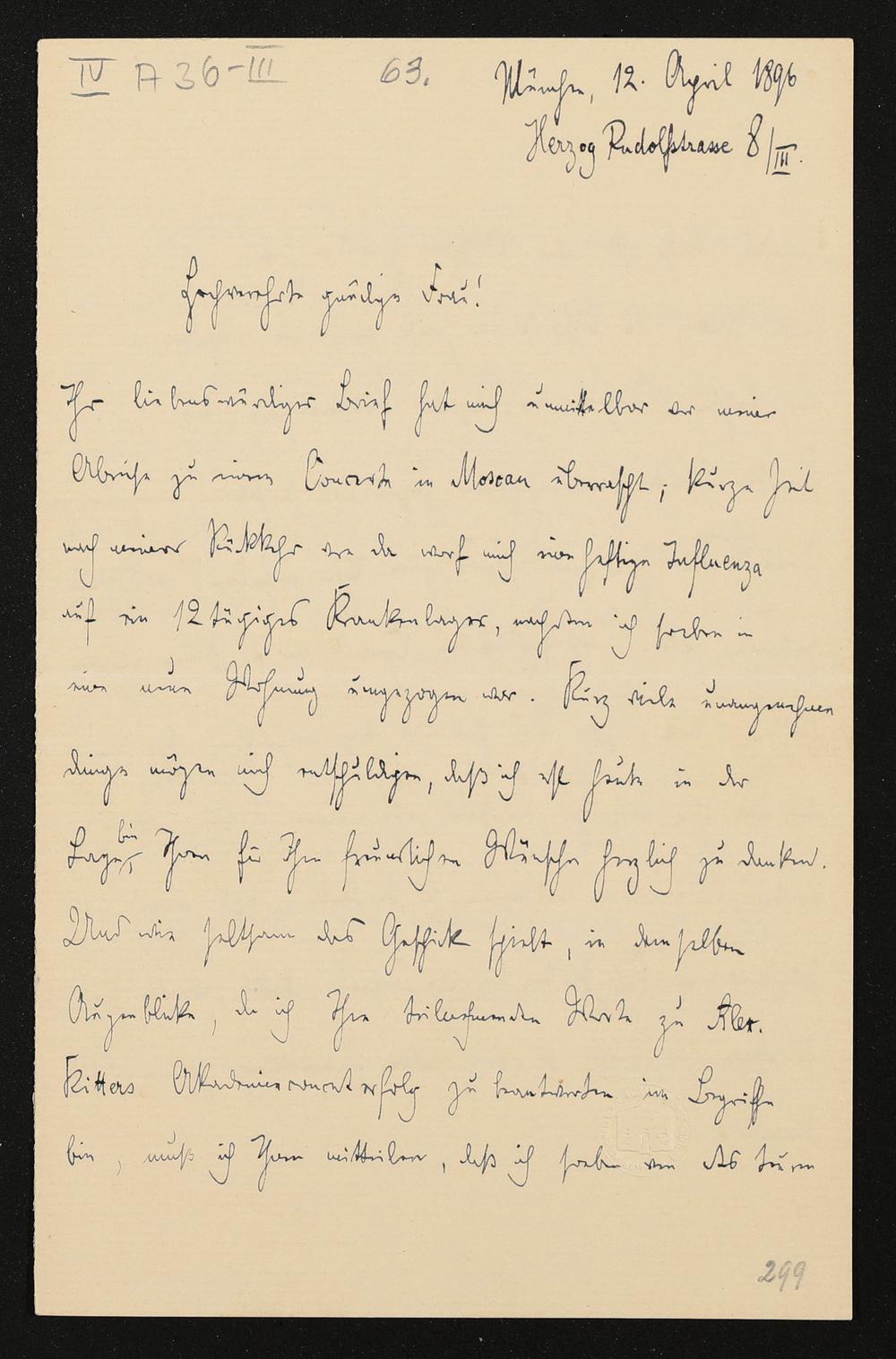eigenhändiger Brief von Richard Strauss an Cosima Wagner