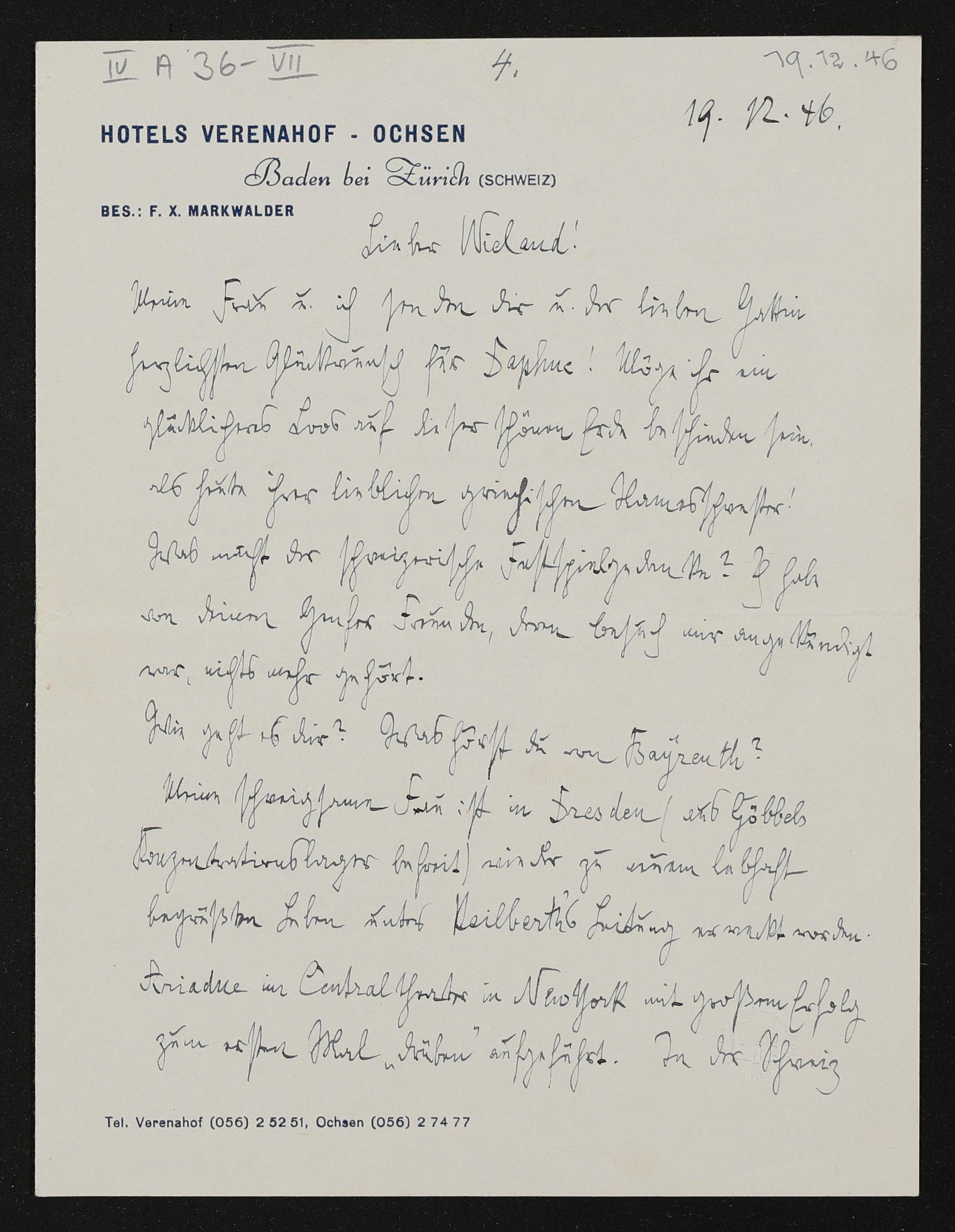 eigenhändiger Brief von Richard Strauss an Wieland Wagner