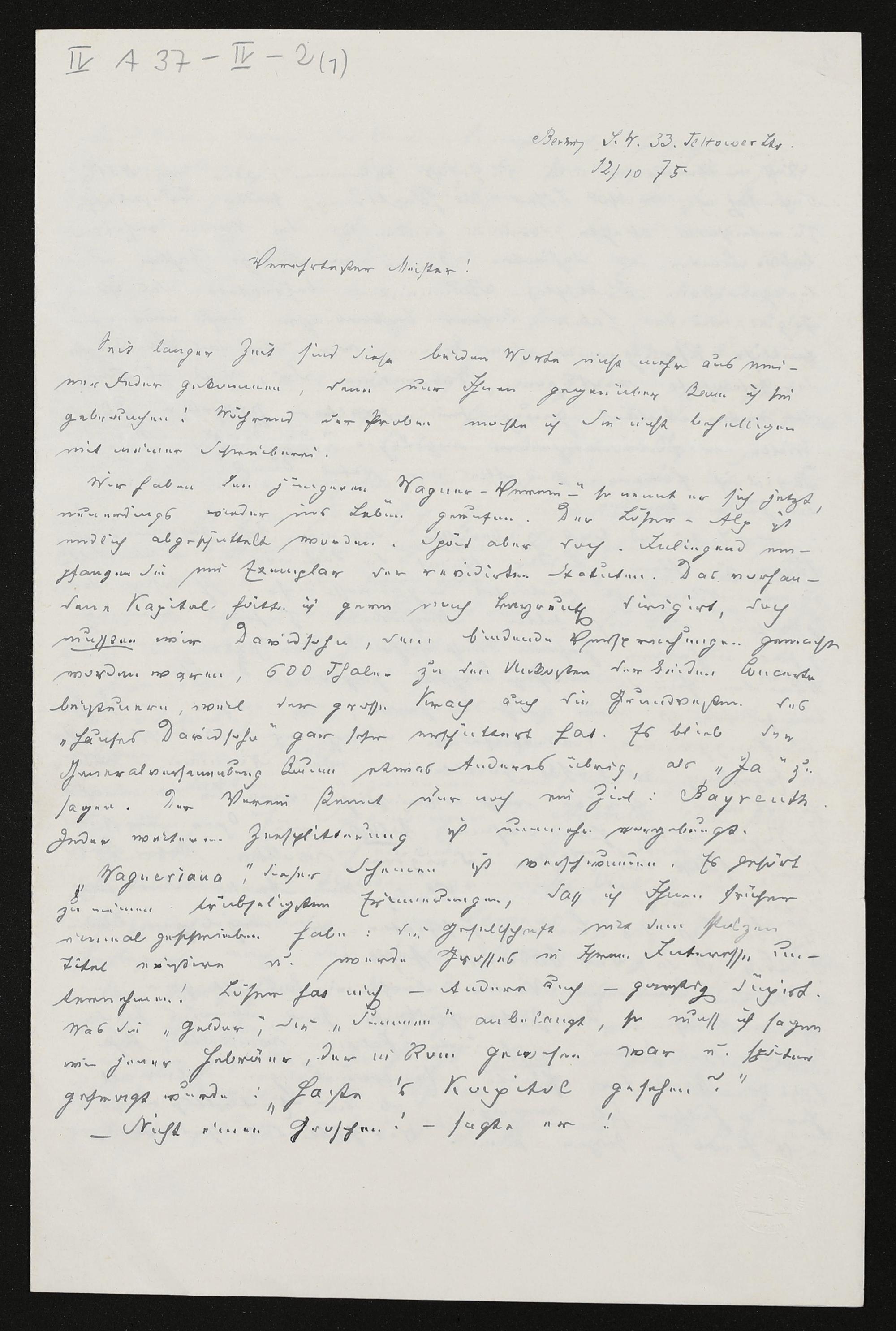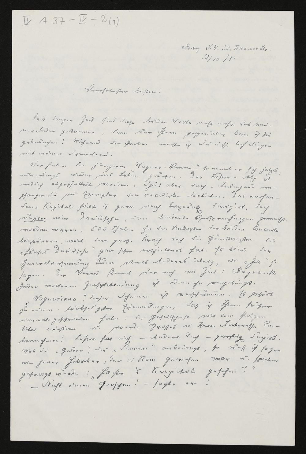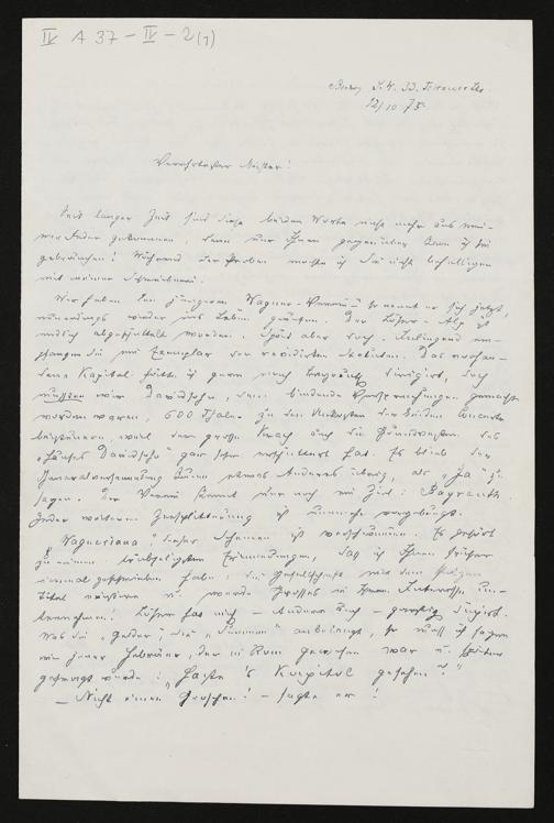 eigenhändiger Brief von Wilhelm Tappert an Richard Wagner, beiliegend: Wagner-Catalog