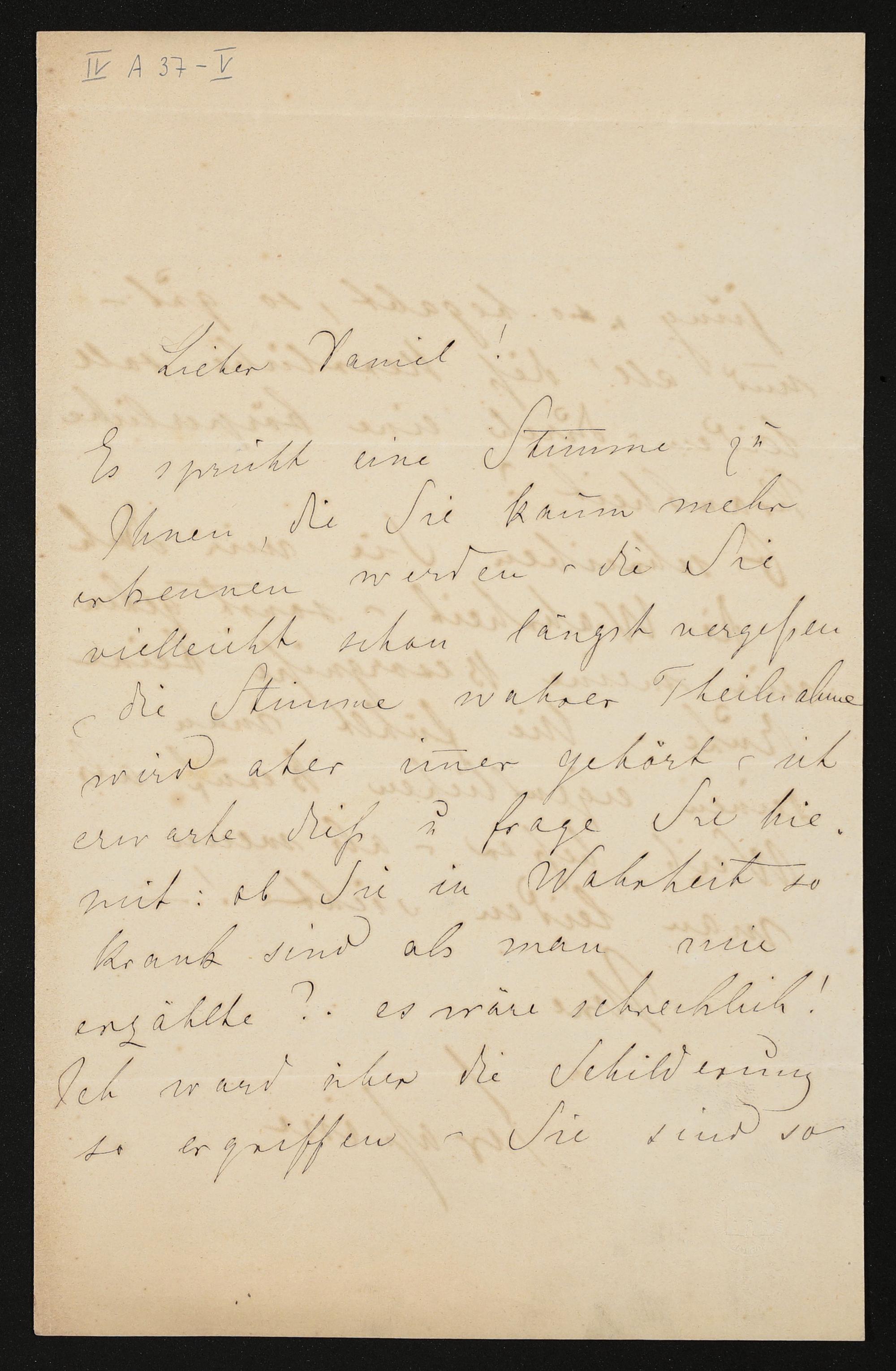 eigenhändiger Brief mutmaßlich von Seraphine Tausig an Daniel Liszt